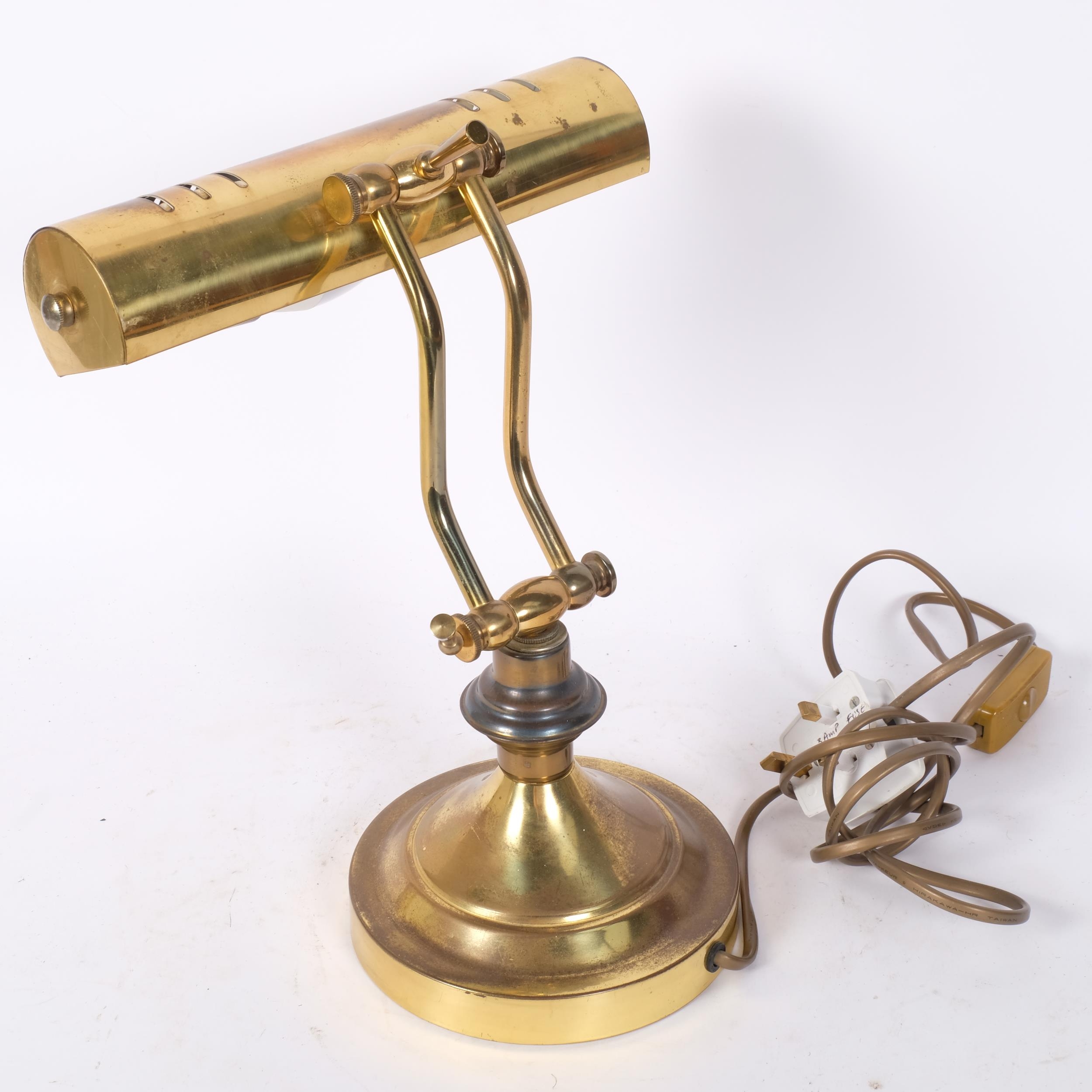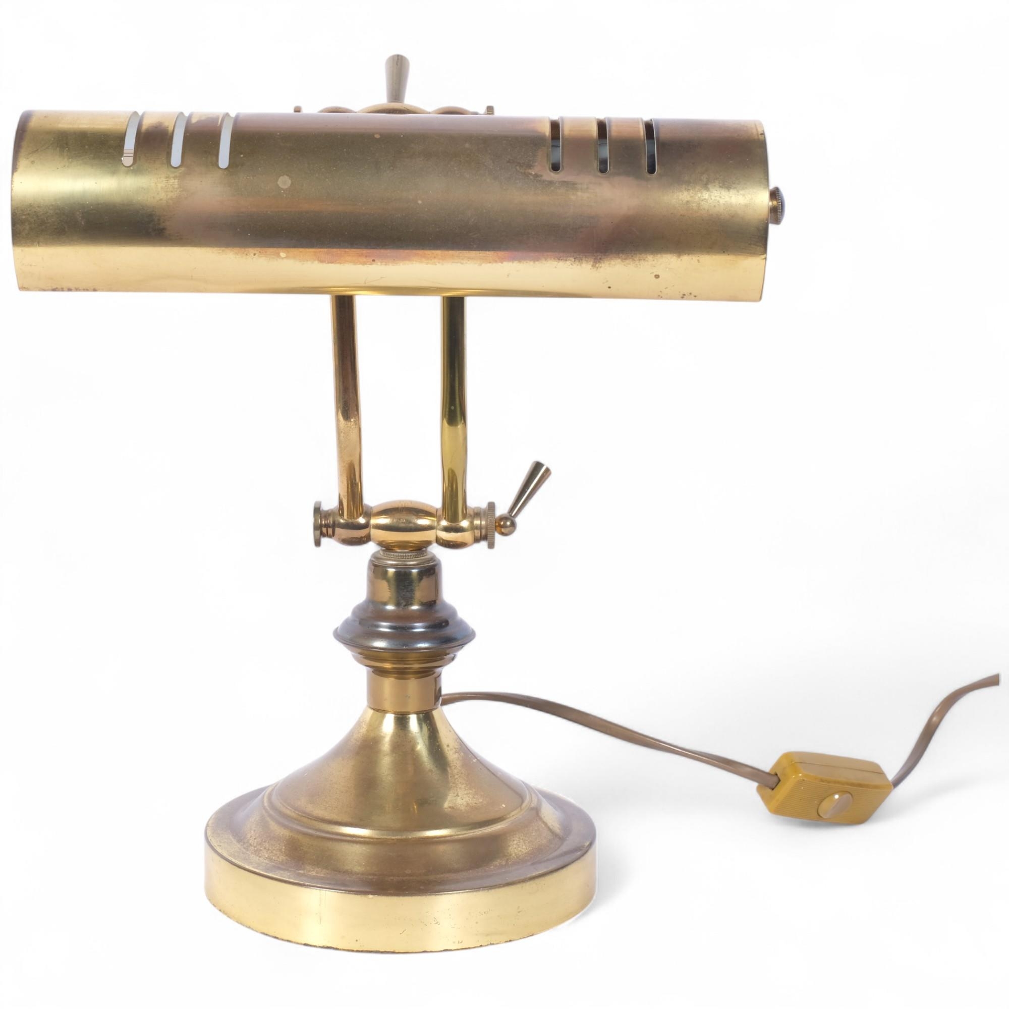A brass desk-top banker's lamp, adjustable shade