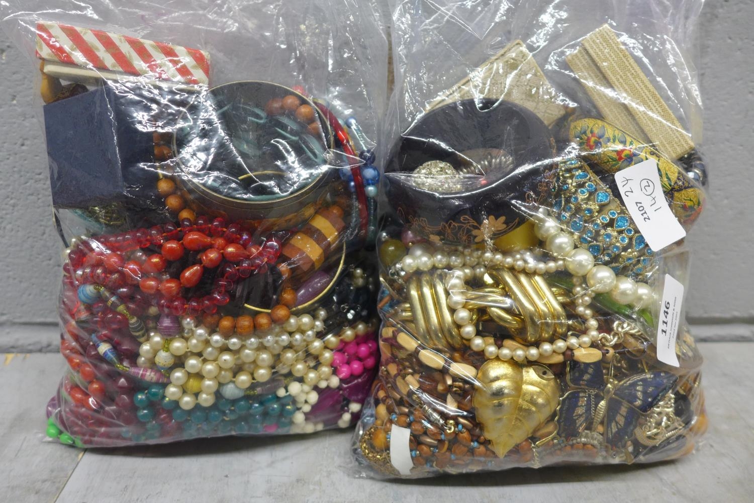 Two bags of costume jewellery