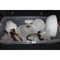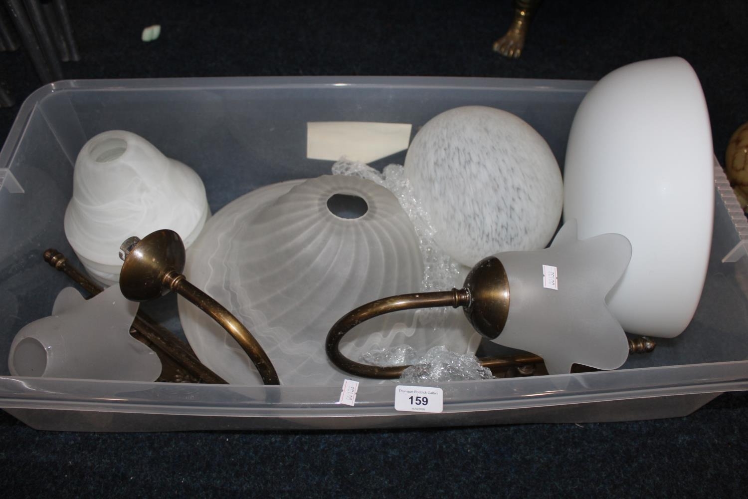 Two wall mountable lights and glass shades.