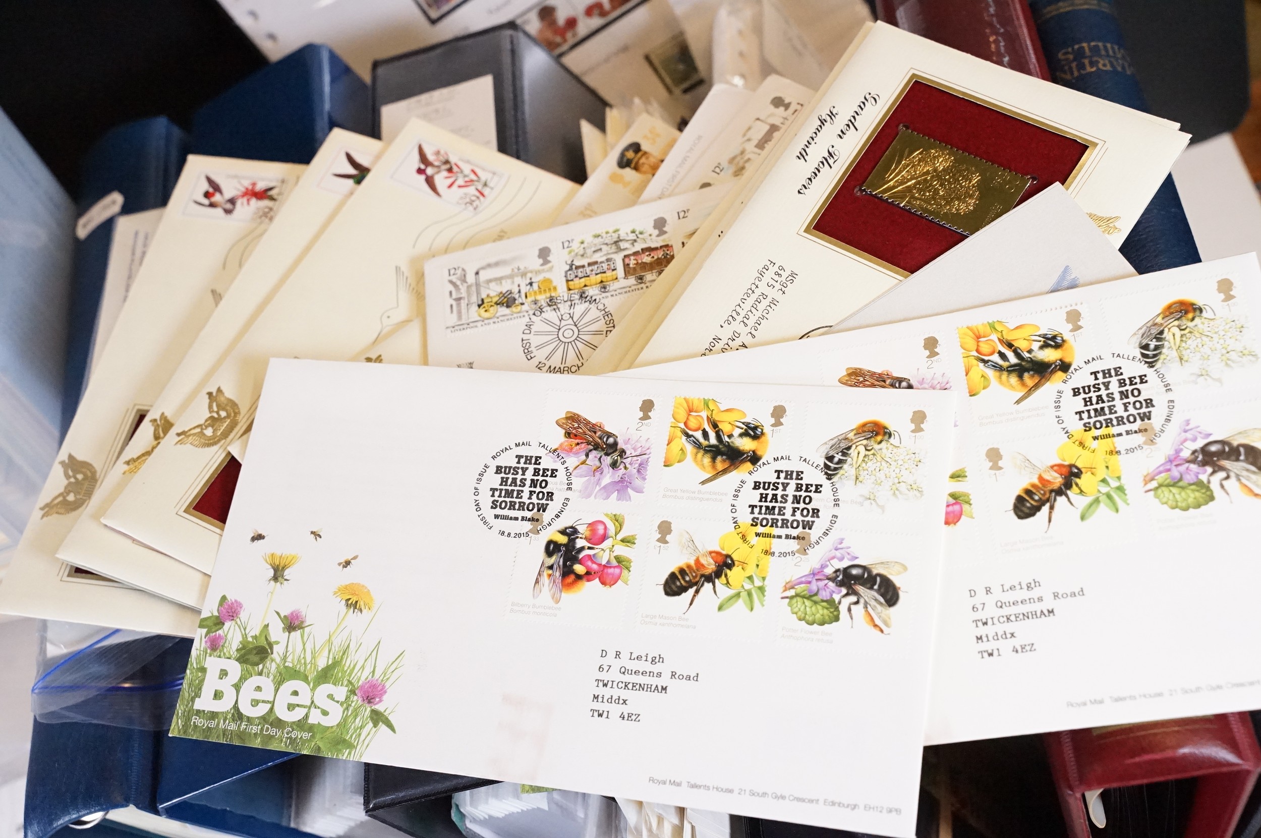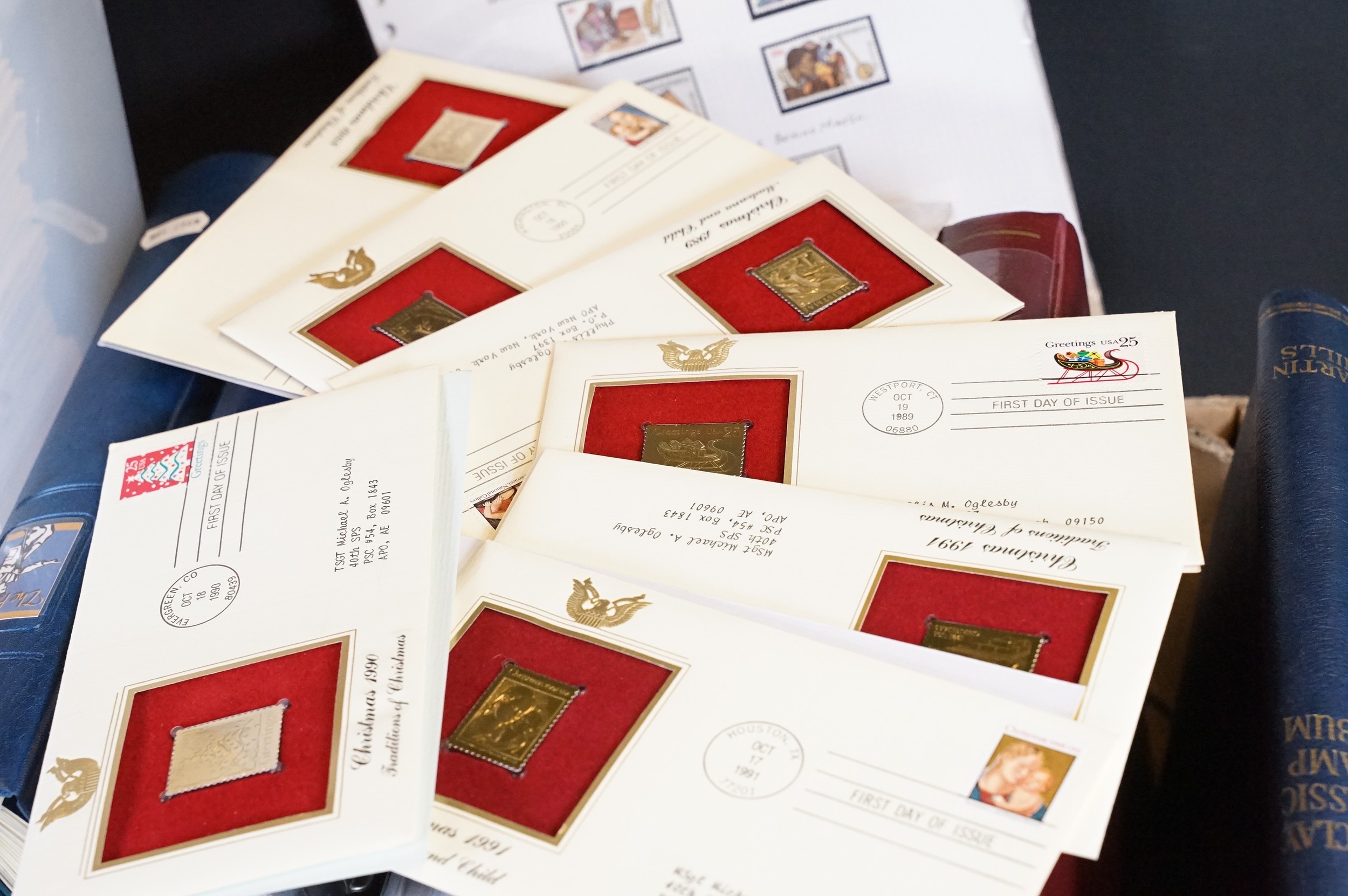 A large collection of world first day covers together with a selection of stamps within albums to include many mint examples..