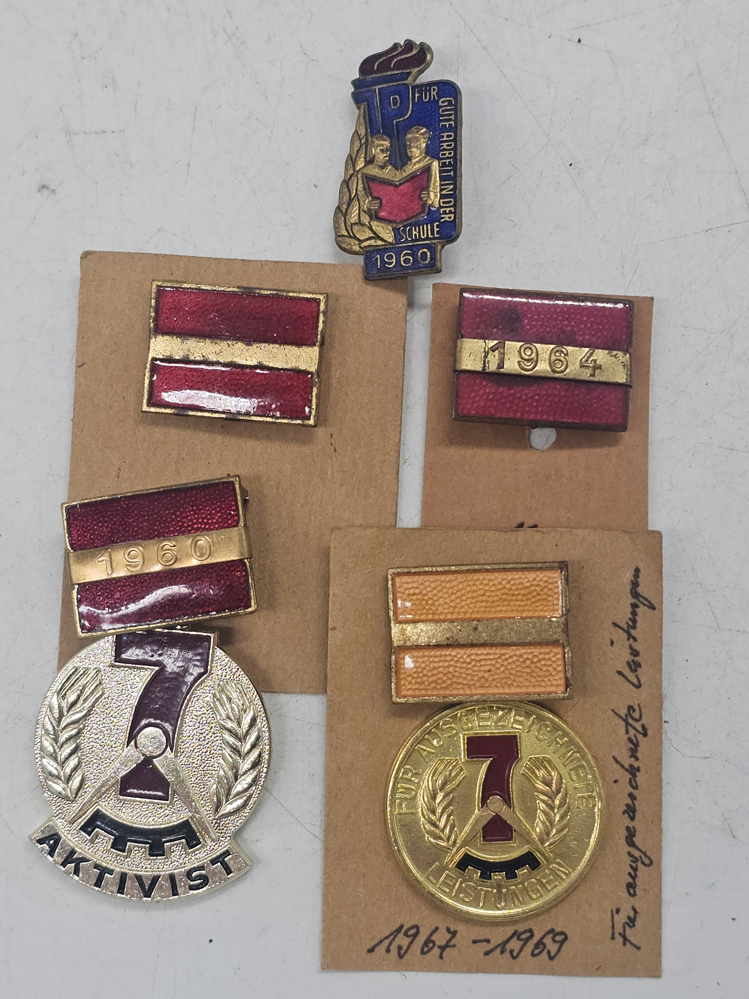 2 East German ( DDR ) "Activist of the Seven-Year plan" honorary medals + few badges