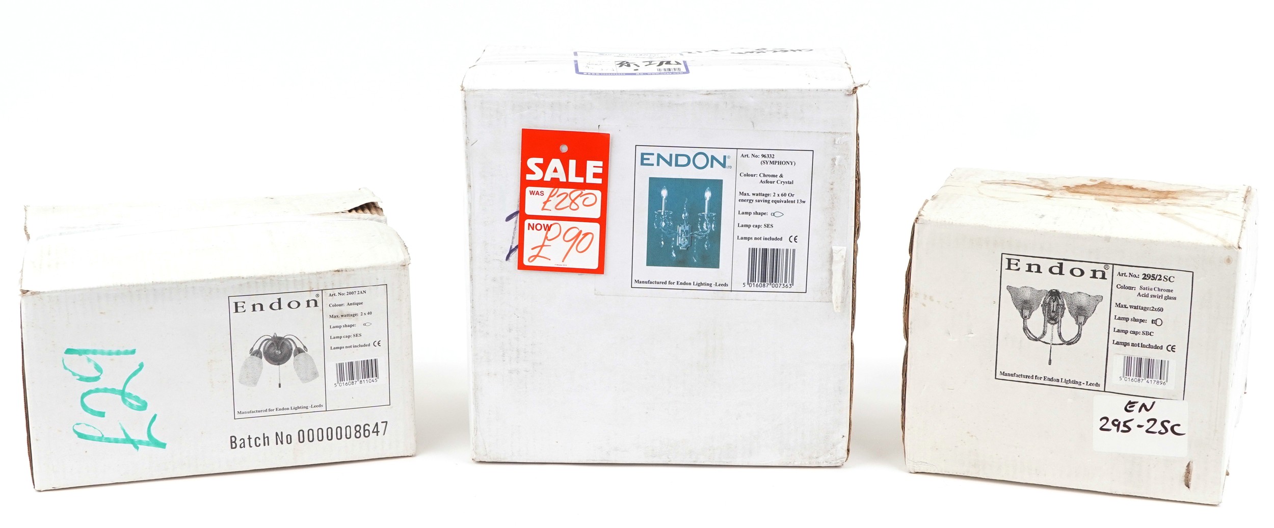 Three as new Endon glass and chrome wall lights.