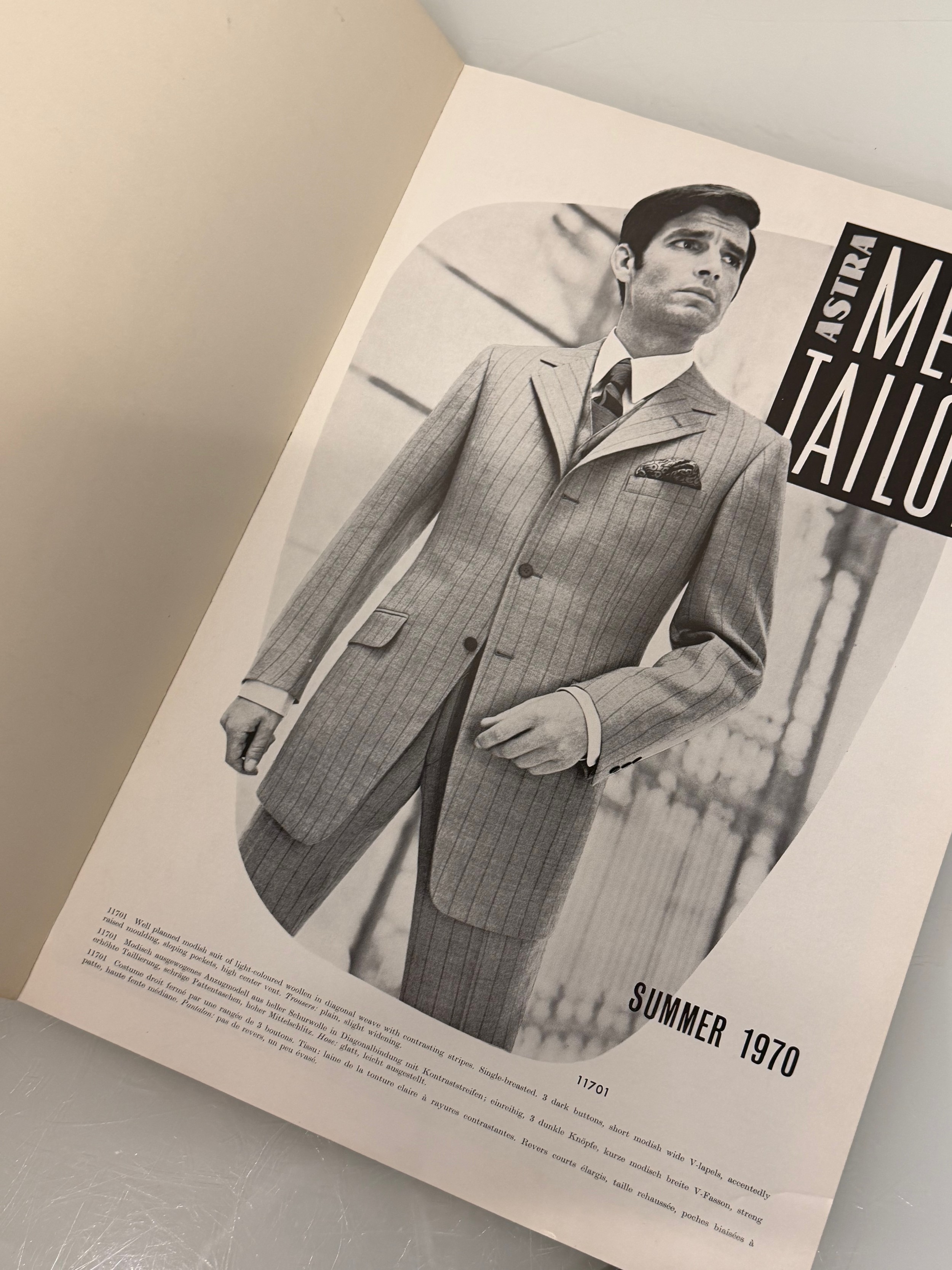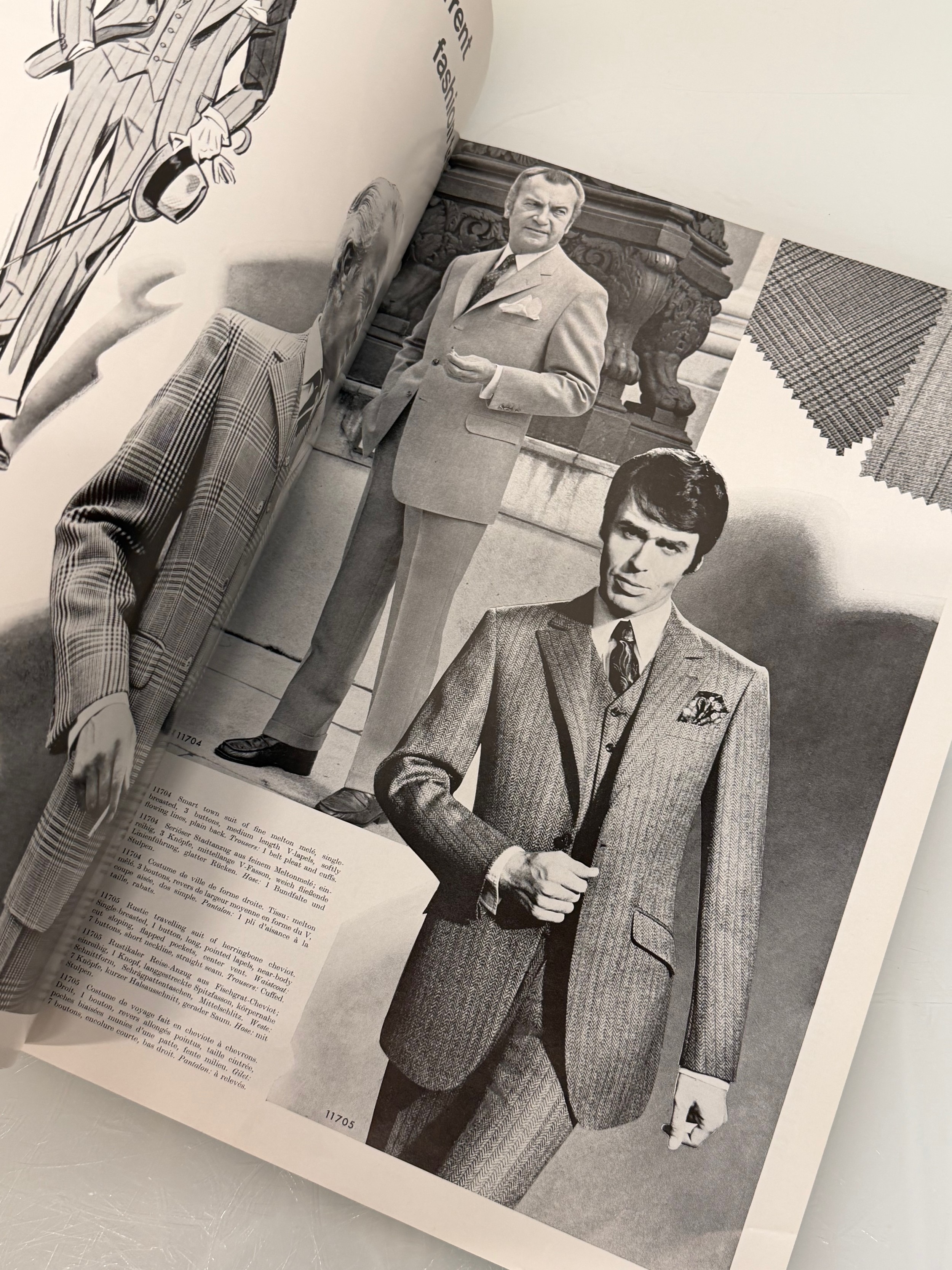 Vintage Fashions, a manufactuers catalogue for 1970 gents clothing, with design illustrations inside.