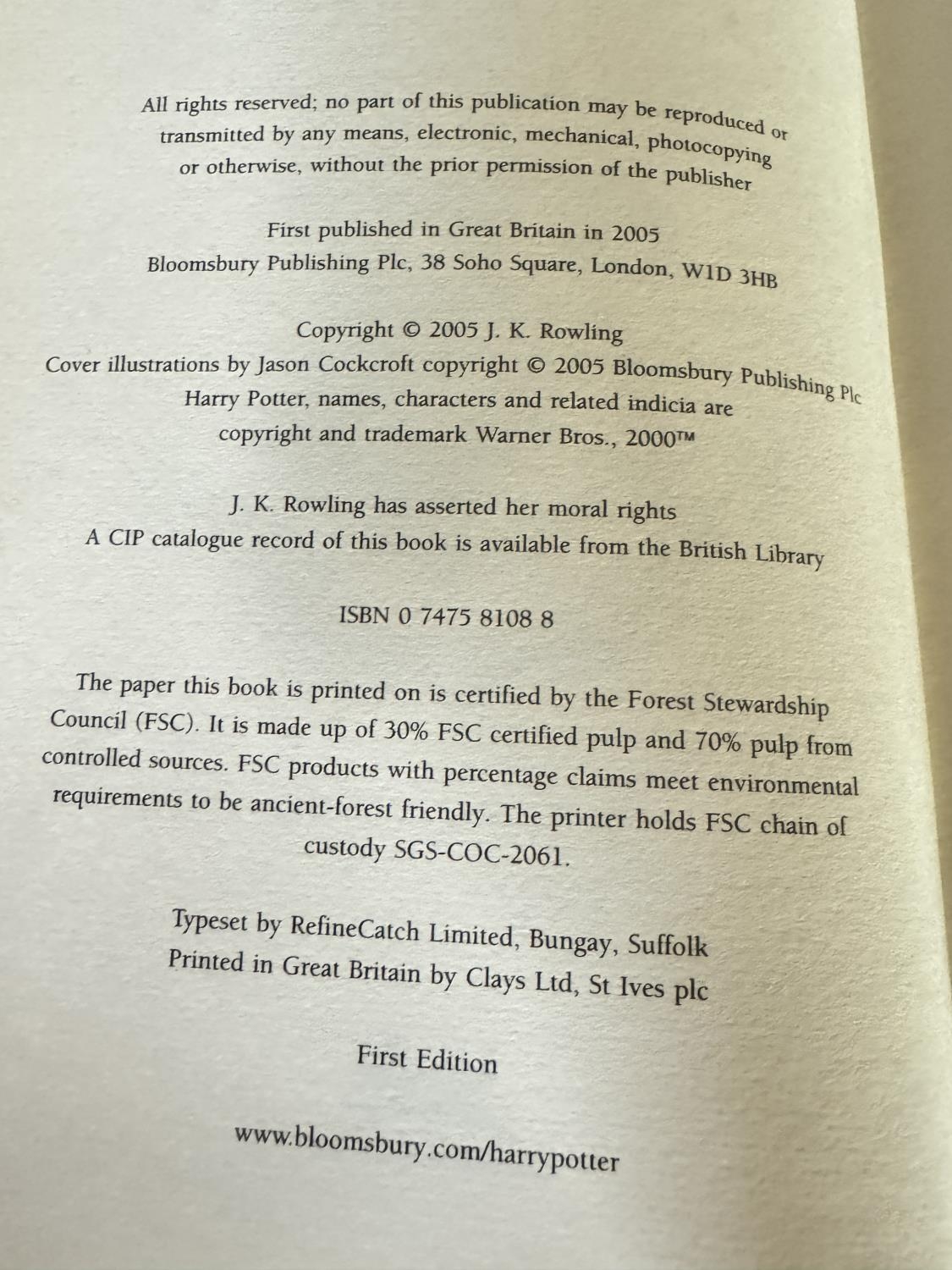 4 HARRY POTTER 1st EDITION HARDBACKS
