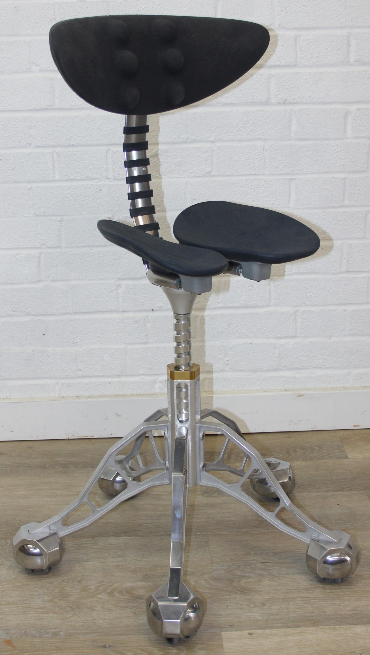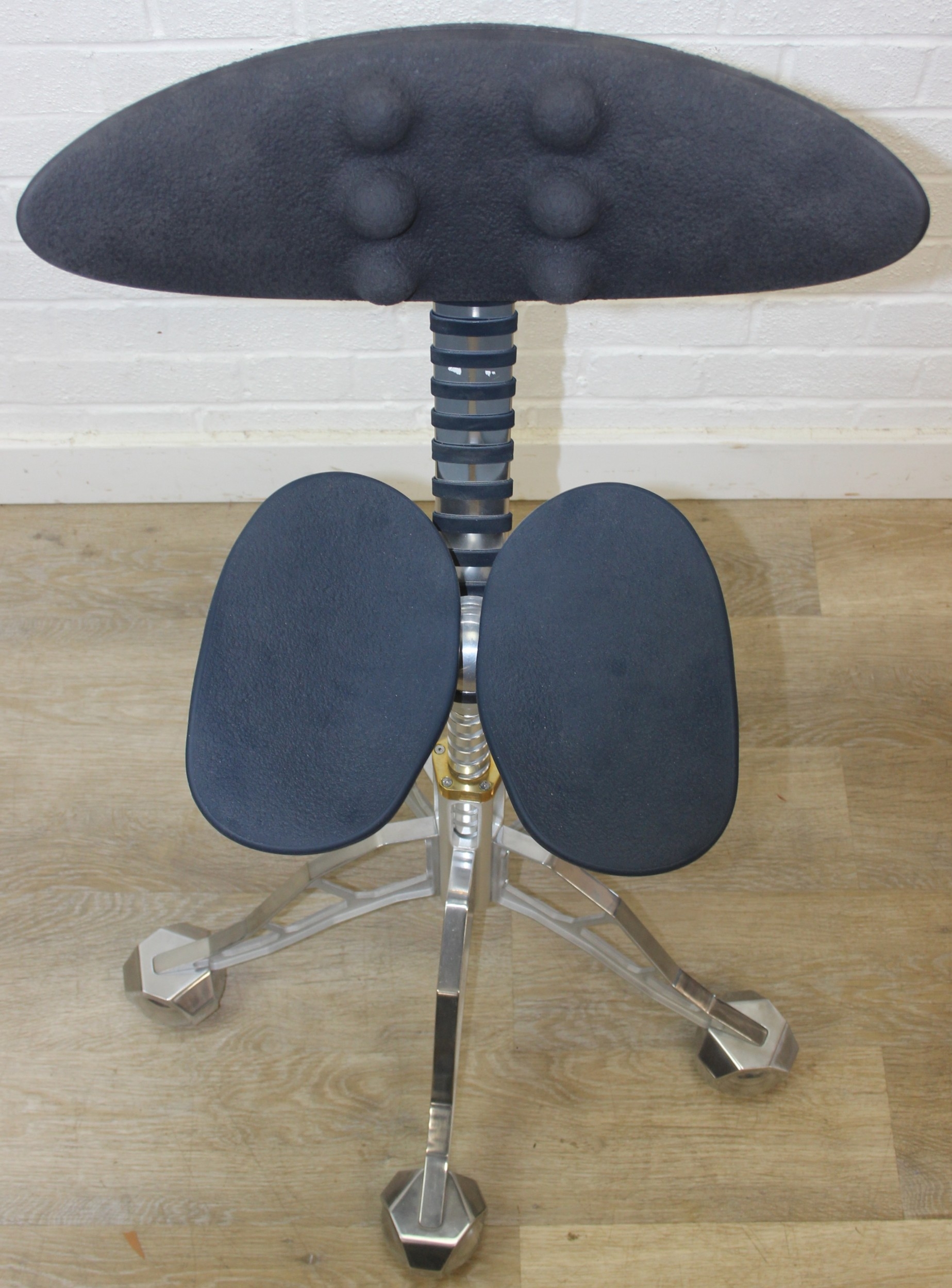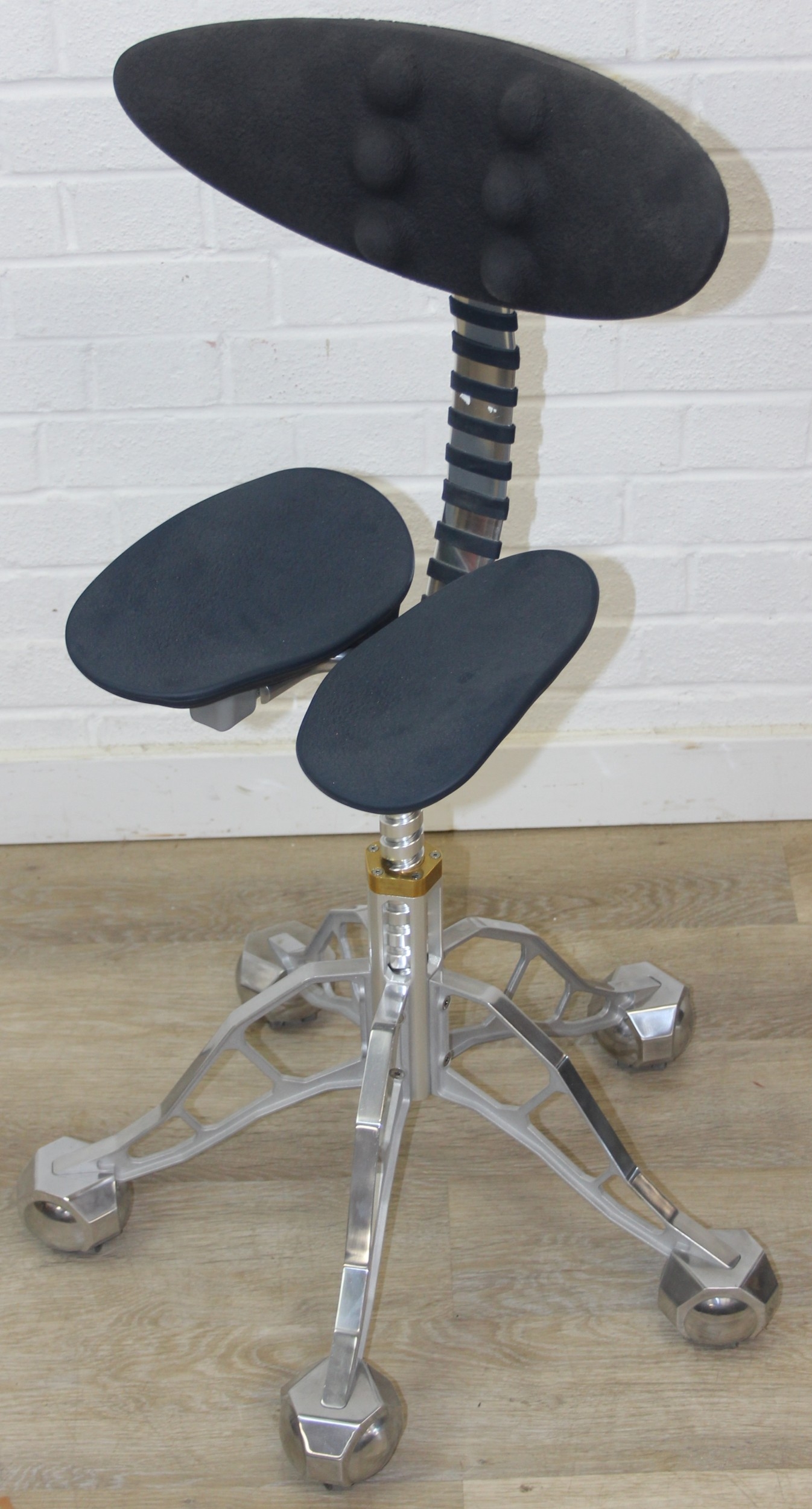 A rare and unusual office chair designed by Simon Freedman, believed to be a KS Edition, sold as the only chair in the world to maintain your standing posture, adjustable height between 82cm x 95cm