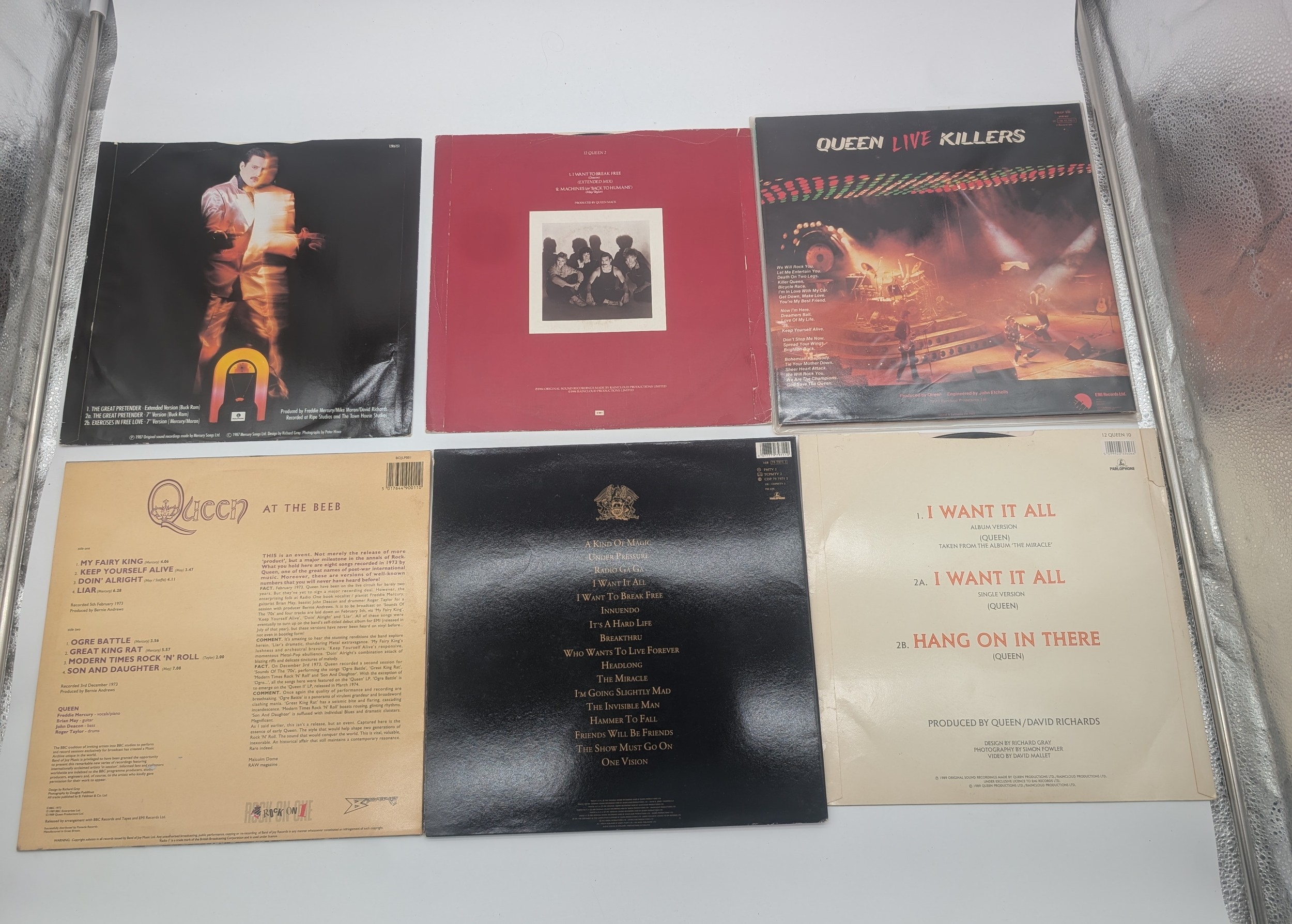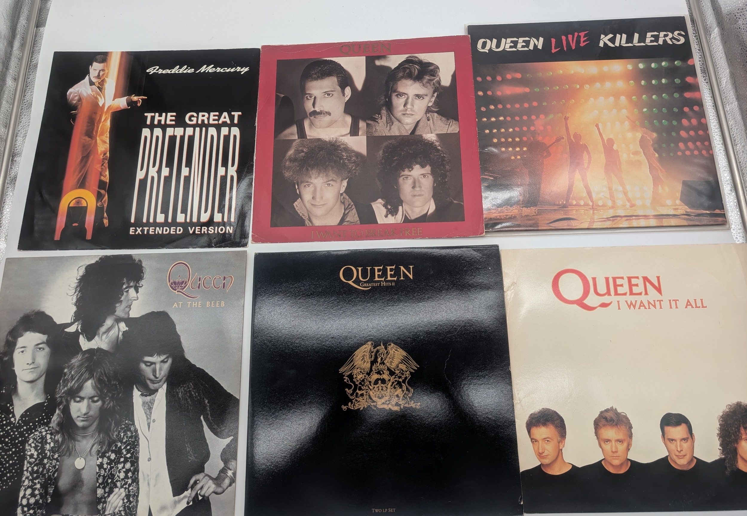 Collection Of Queen Records to include: Queen Live Killers, I Want To Break Free, EP The Great Pretender, Greatest Hits Two, At The Beeb and I Want To Break Free EP.