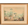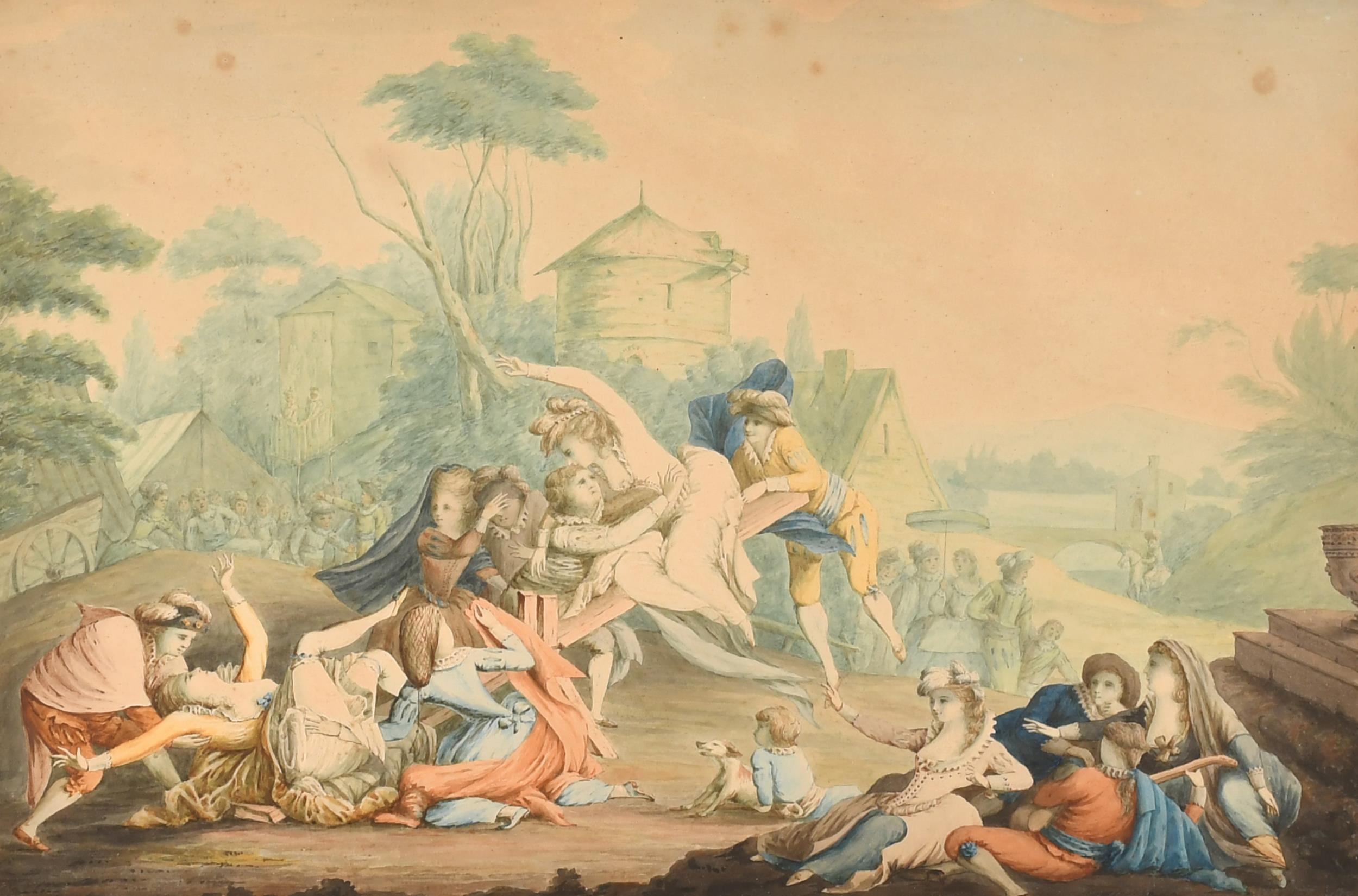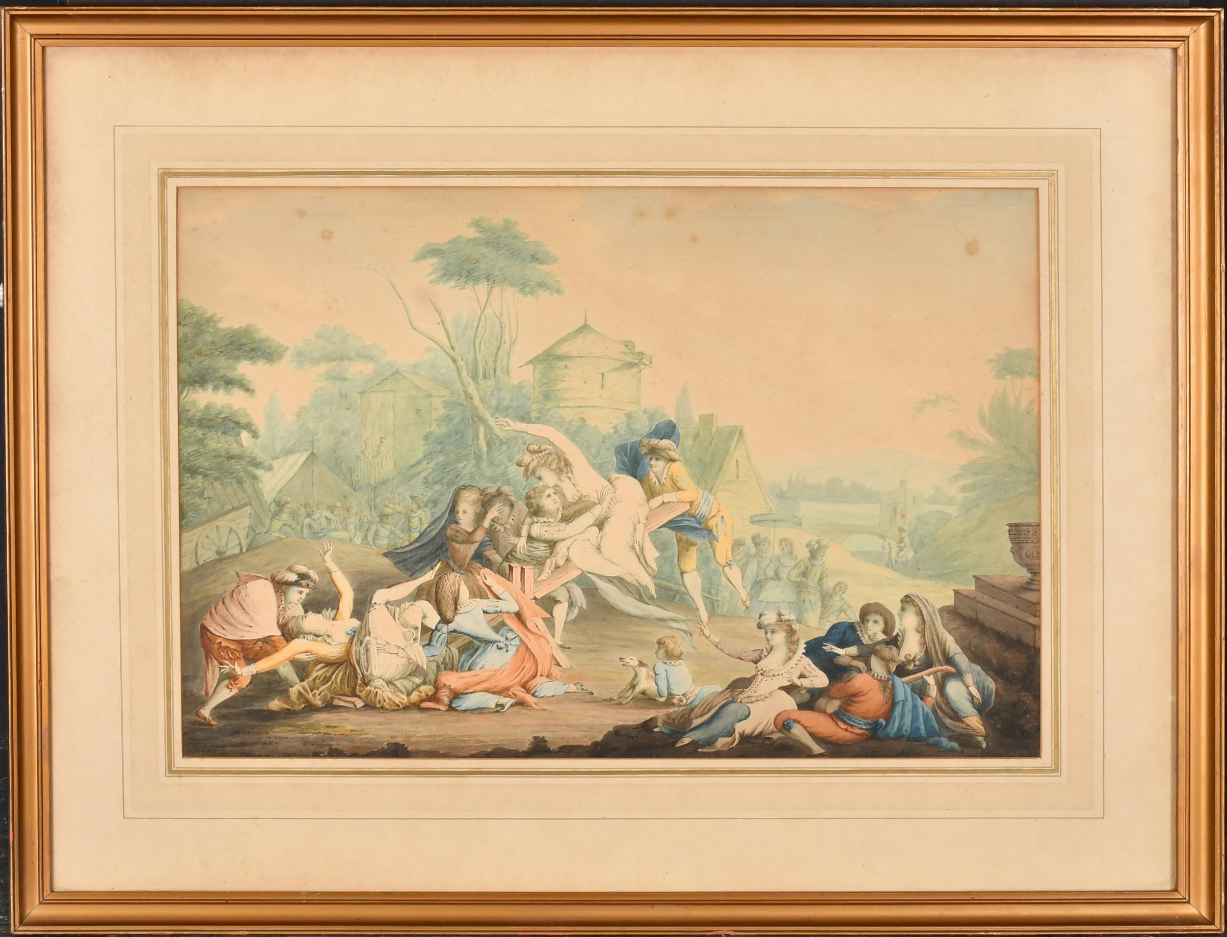 Circle of Johann Heinrich Ramberg (1763-1840) German. 'Figures Frolicking on a Seesaw', Watercolour, 12" x 17.75" (30.5 x 45.1cm)
