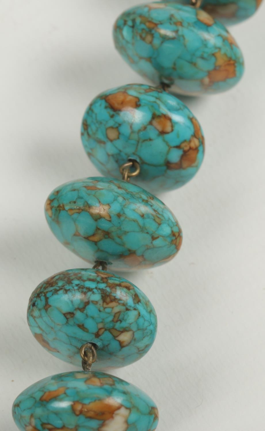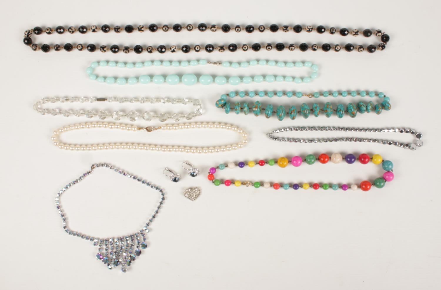A collection of jewellery, mainly necklaces. Includes turquoise example, simulated pearls, past set etc.