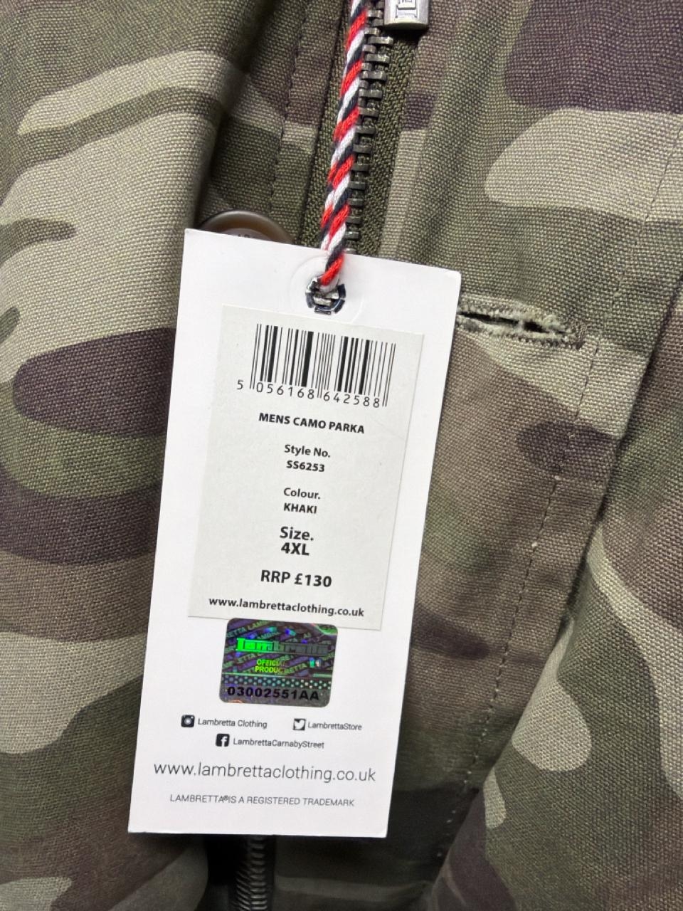 NEW LAMBRETTA PARKA STYLE COAT, 4XL