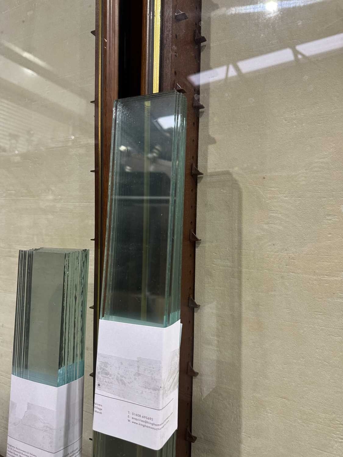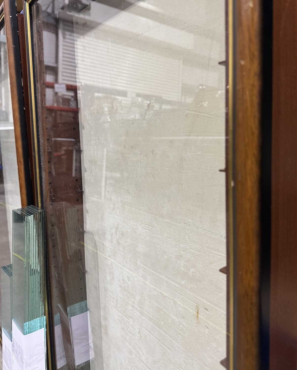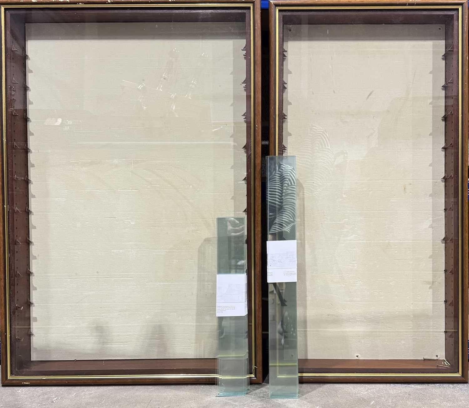 Two wooden framed, glazed, model or display cabinets with glass shelves 96 by 65cm, 95 by 49cm (2)