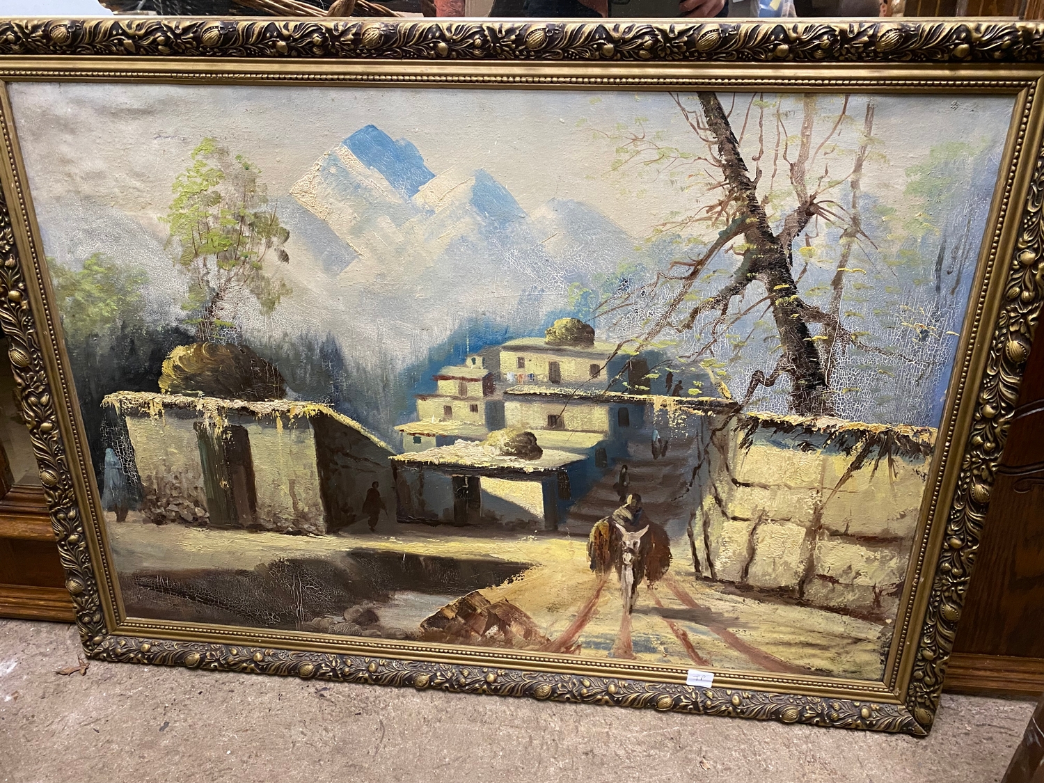 Large oil painting on board, continental scene