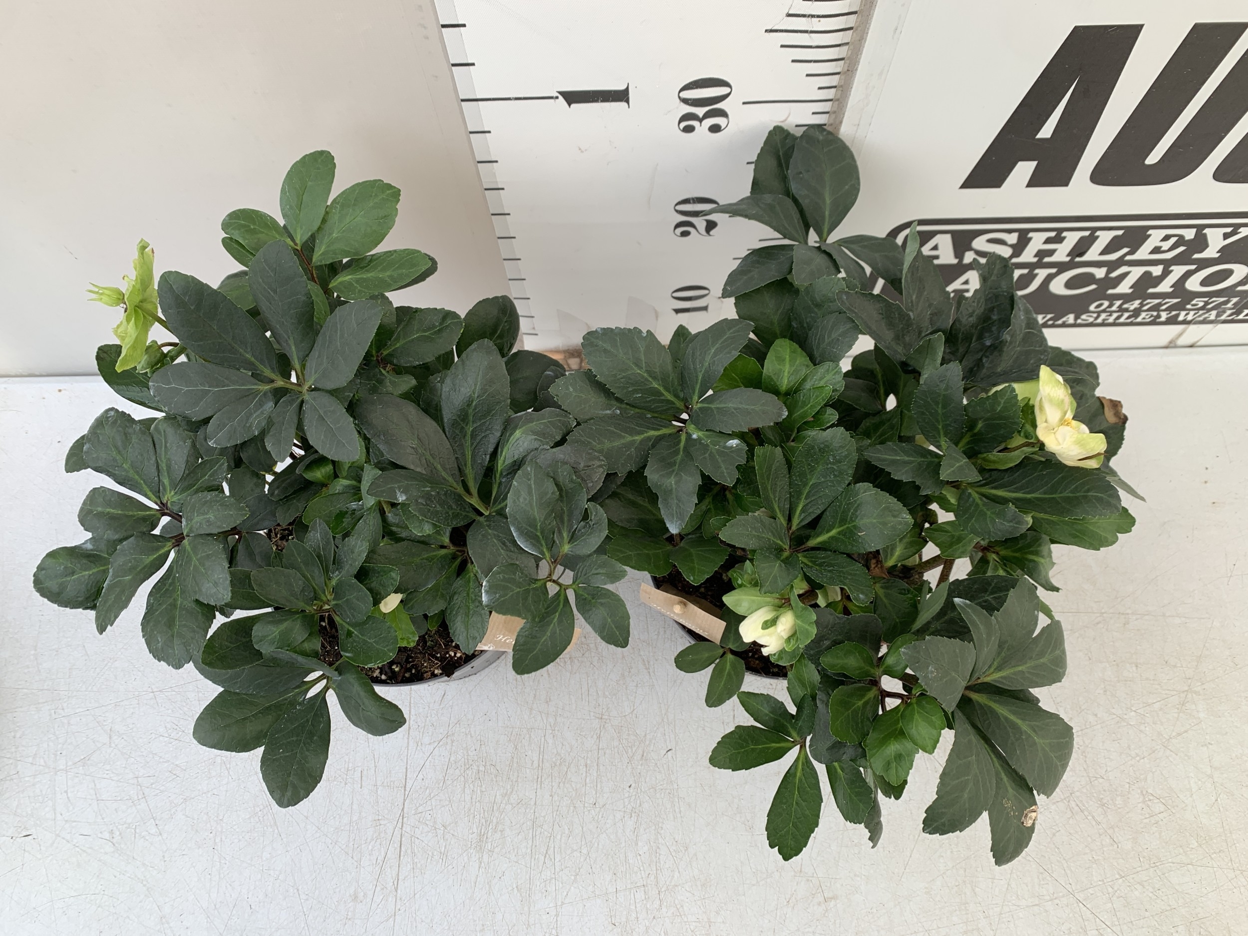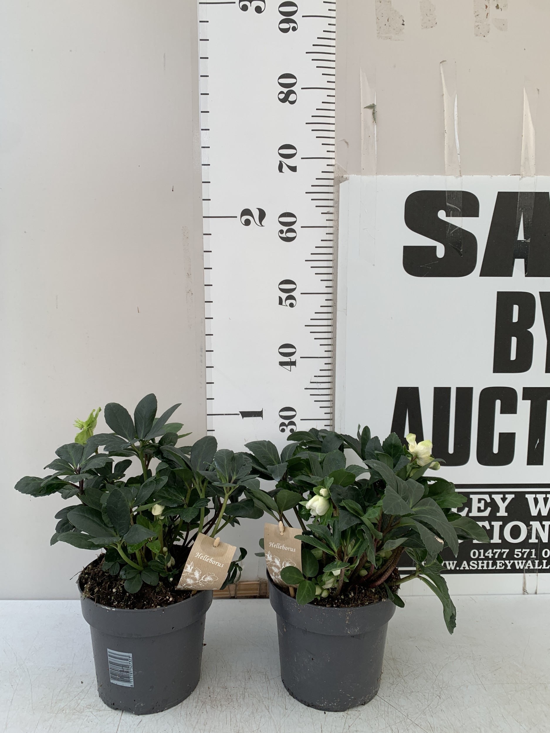 TWO PREMIUM WHITE HELLEBORES NIGER 'CHRISTMAS CAROL' IN 2 LTR POTS. APPROX 30CM TALL, IN FLOWER. TO BE SOLD FOR THE TWO