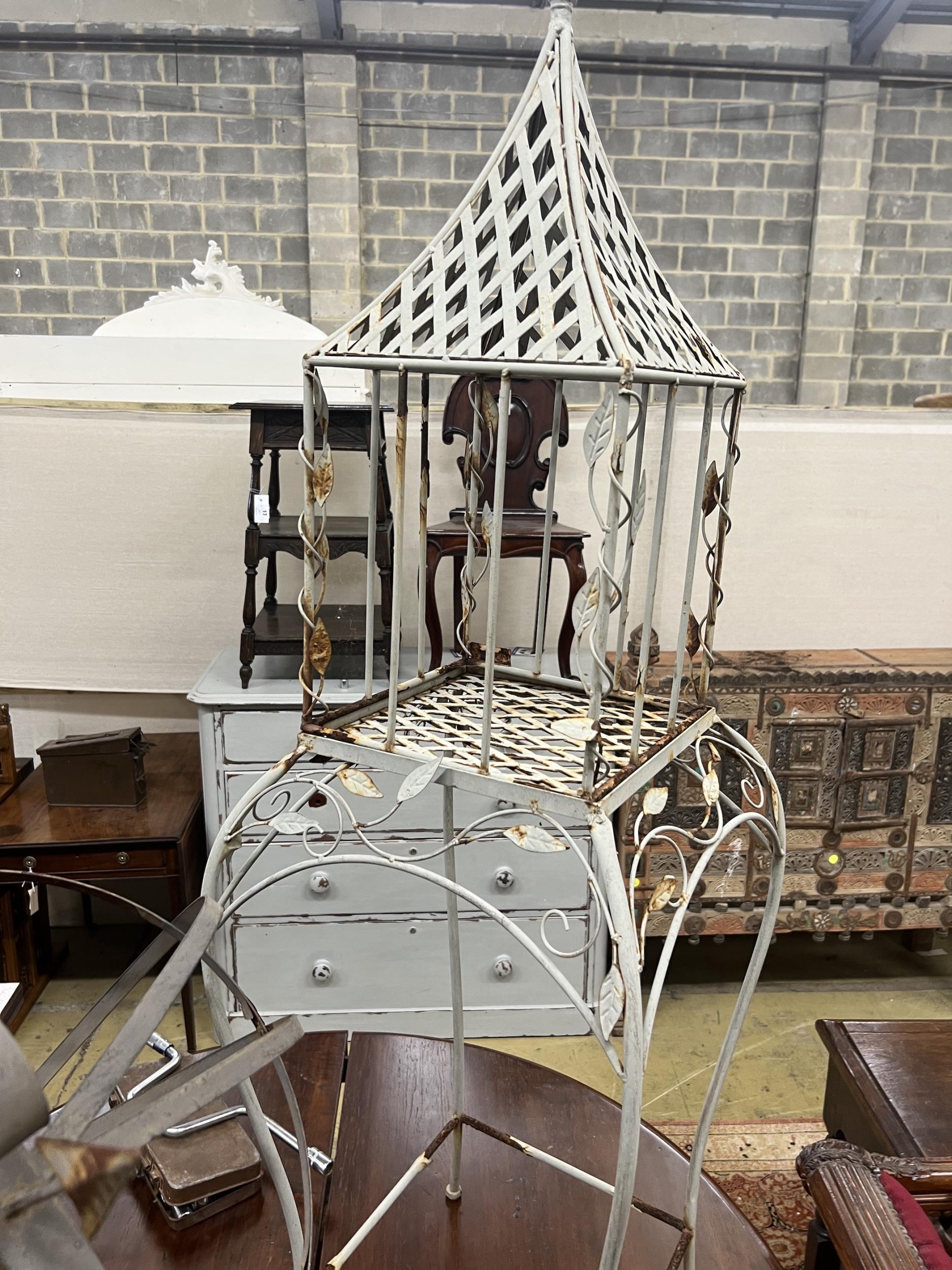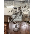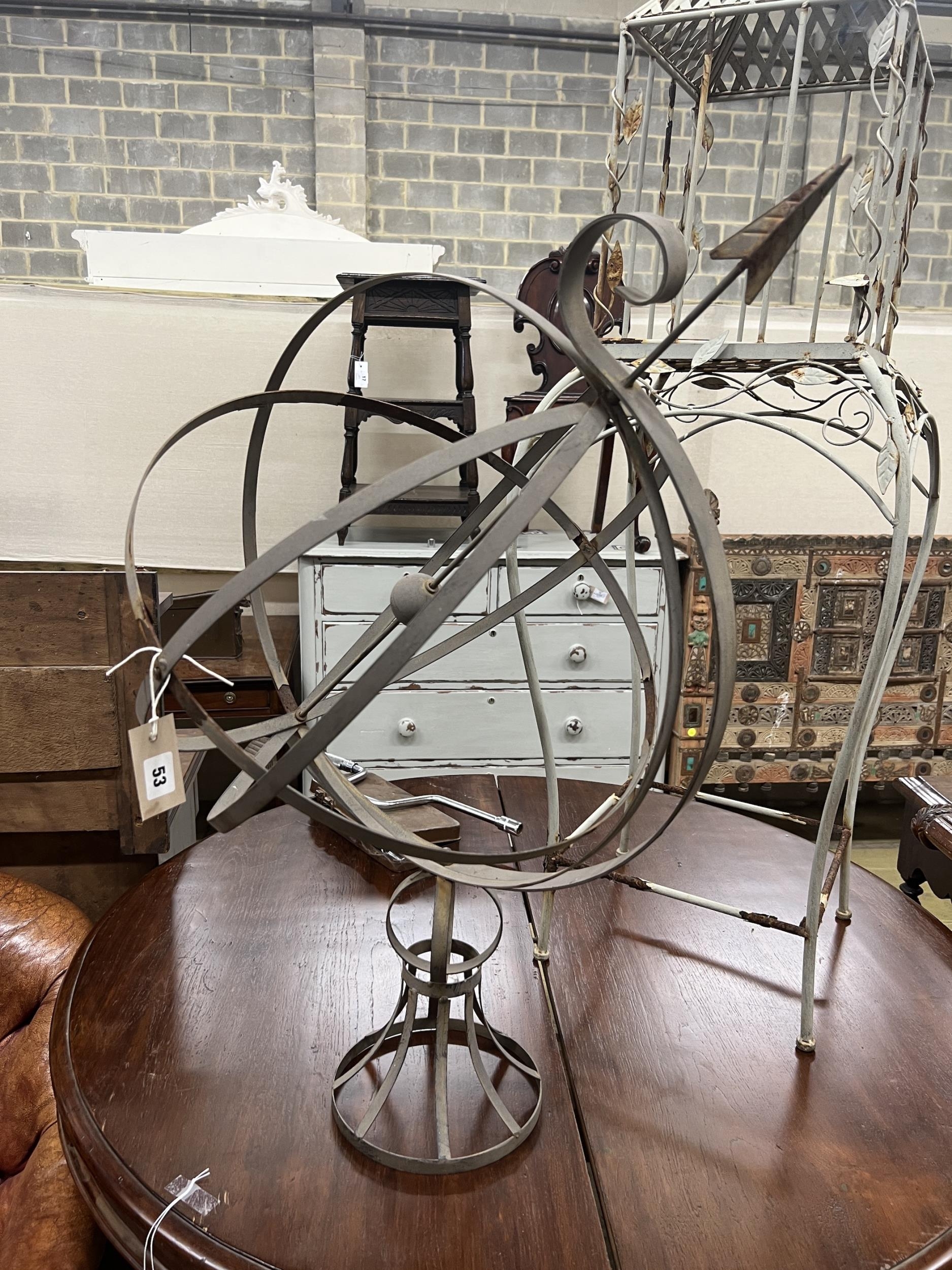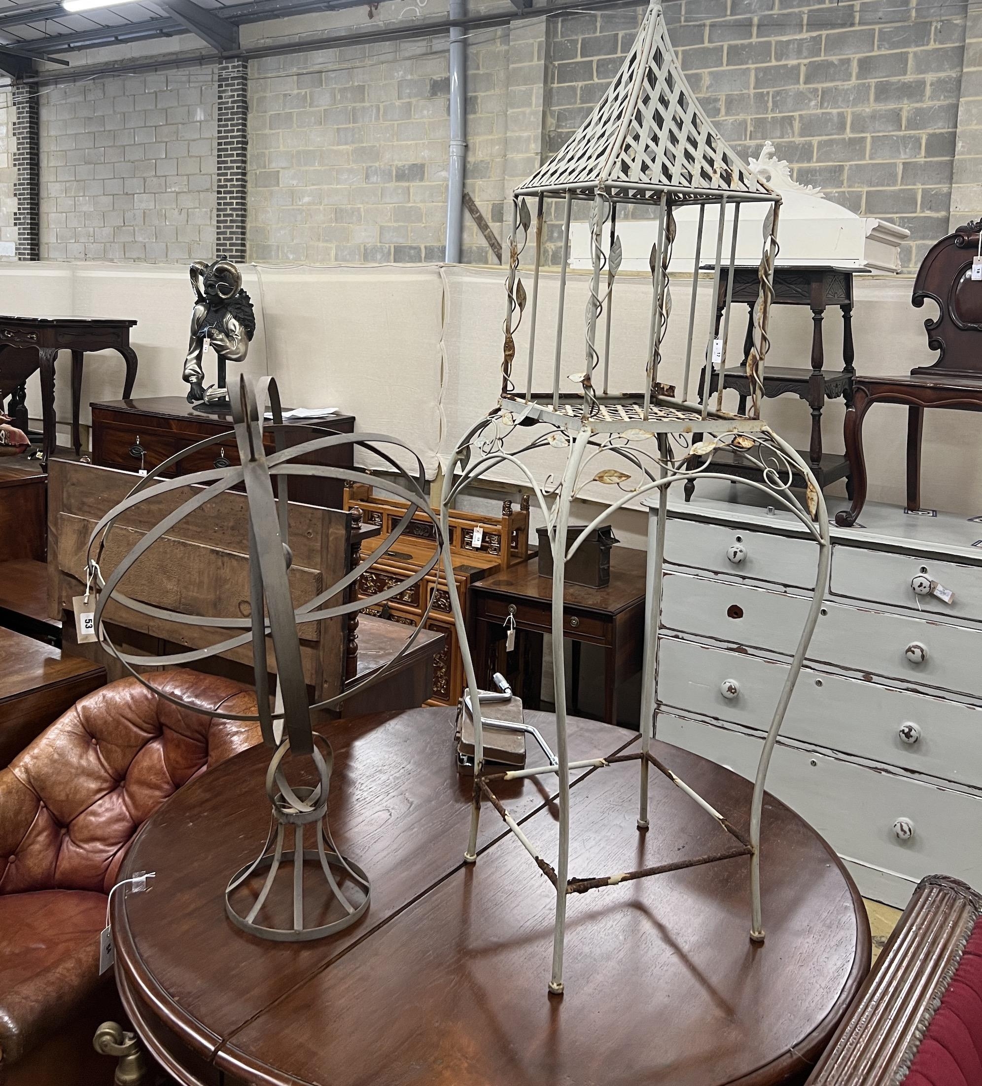 A painted metal armillary sphere, height 84cm together with a lantern