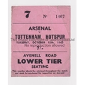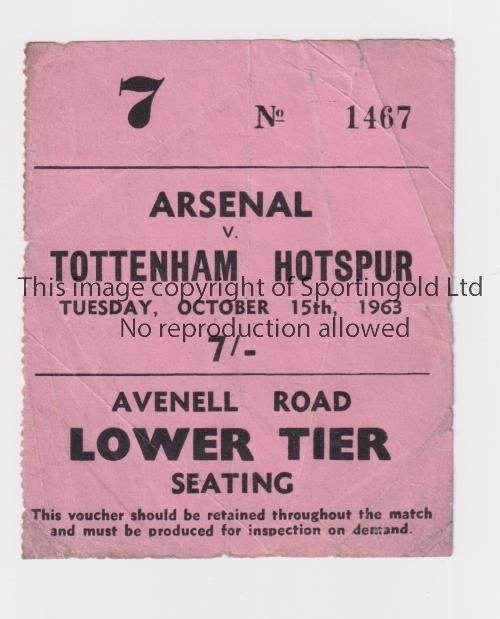 ARSENAL V TOTTENHAM HOTSPUR 1963 Ticket for the League match at Arsenal 15/10/1963, folded and slightly worn. Fair to generally good