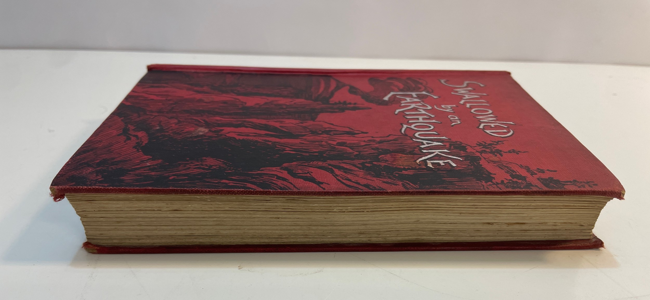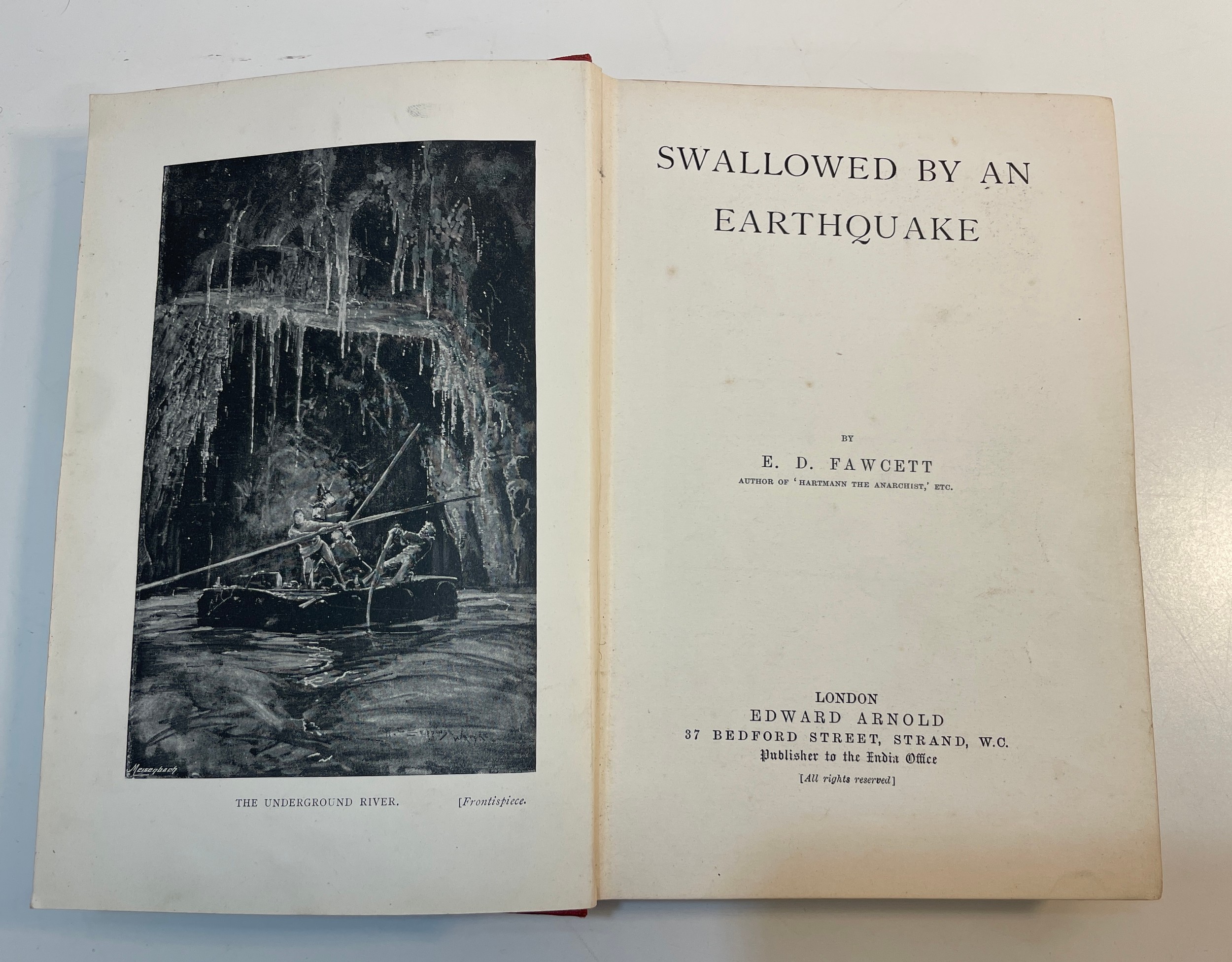 Rare book- Swallowed by an Earthquake - E.D. Fawcett Published by Edward Arnold London 1894 with red cloth binding. Inscription inside front cover dated 1915. Six illustrations.