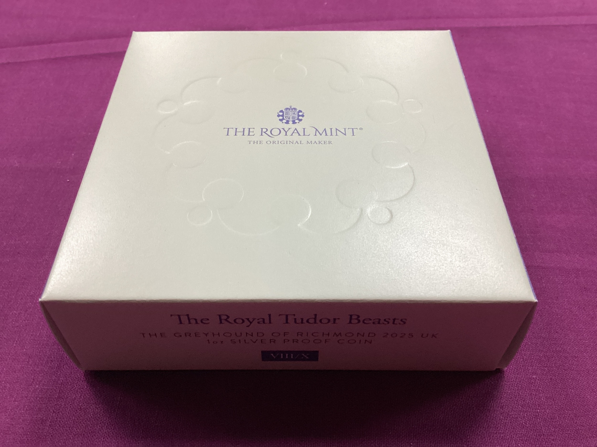 2025 Royal Mint Tudor Beasts 'The Greyhound Of Richmond' Silver Proof One Ounce Coin, cased with a certificate of authenticity.