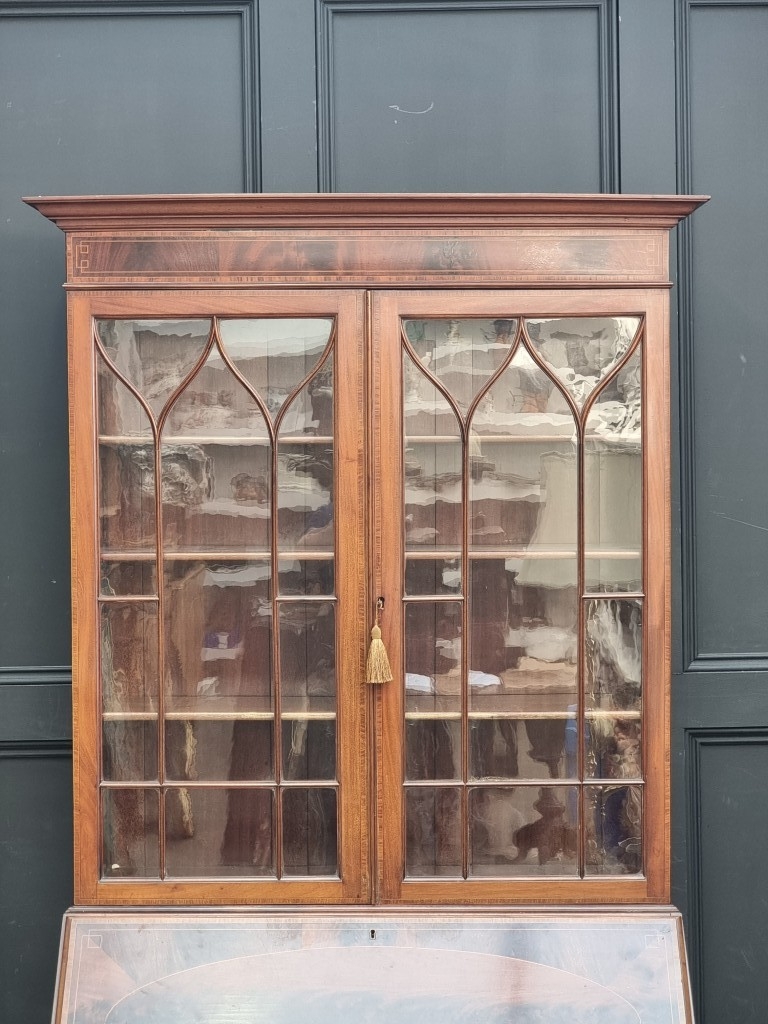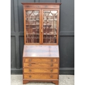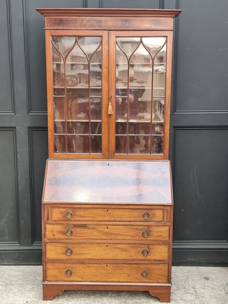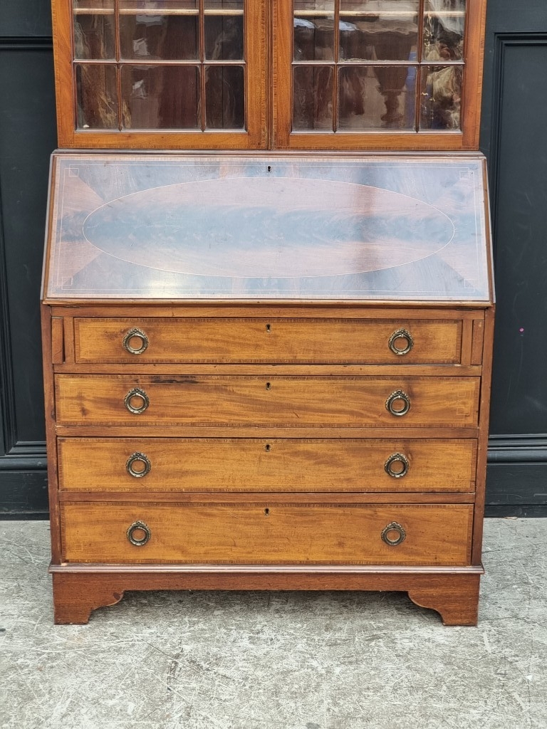 An Edwardian mahogany, line inlaid and crossbanded bureau bookcase, 99cm wide.