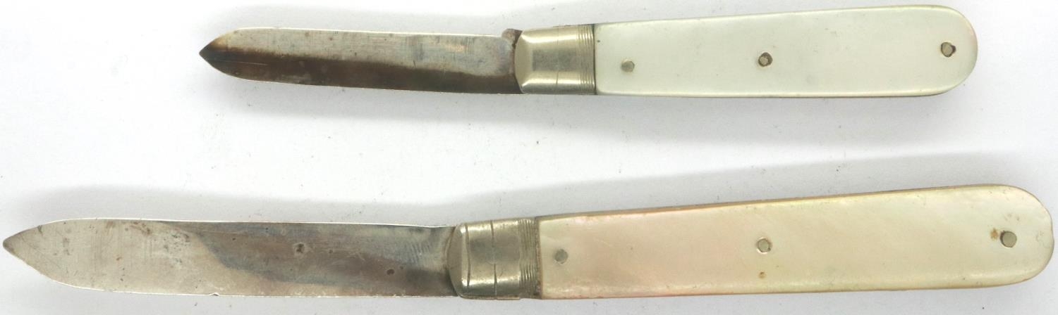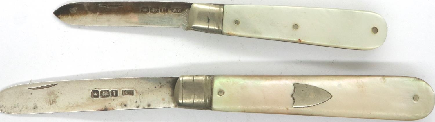 Two hallmarked silver fruit knives. P&P Group 1 (£14+VAT for the first lot and £1+VAT for subsequent lots)