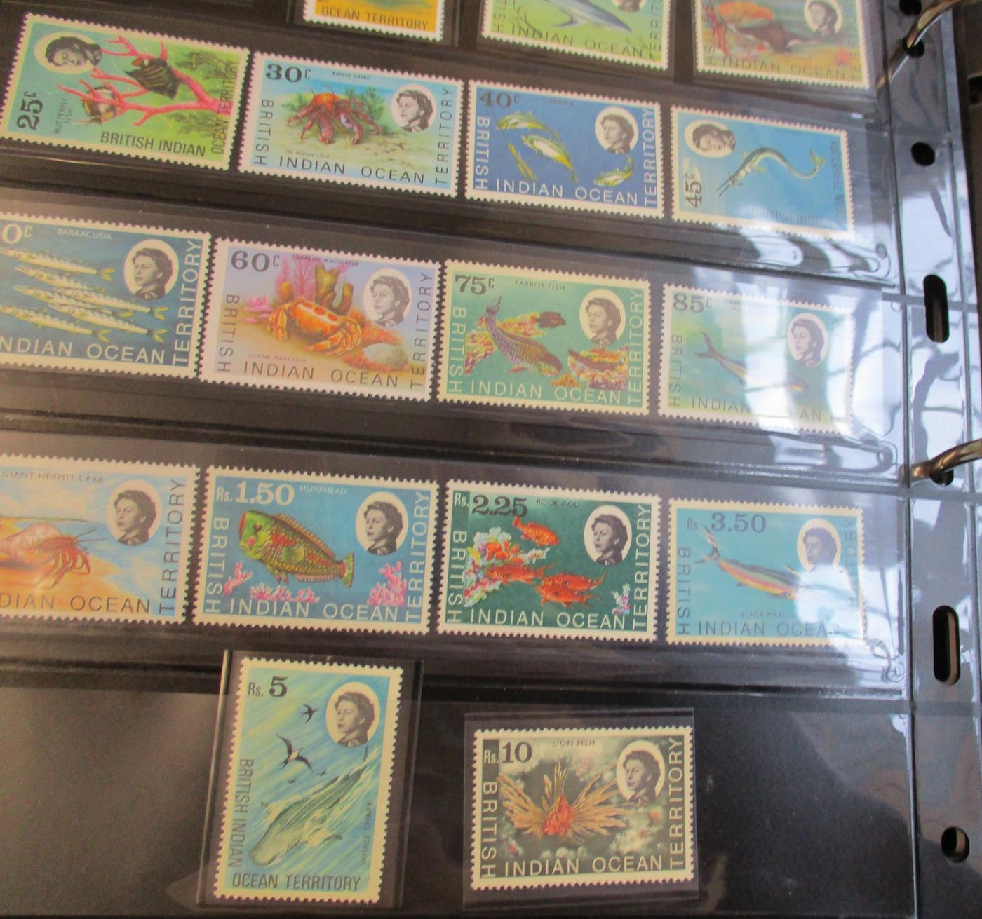 World misc, nearly all BC with strength in 1960's-early 1970's apparently UM coln of complete or short defin sets (few commem sets), binder 1 countries A-G with much useful incl BWI, Middle East, Bermuda, Botswana incl Minerals, BAT UM incl 1969 £1 (3), 1971 dec set, Treaty set (2), BIOT, binder 2 countries S-U incl Singapore 1970's, also incl HK 1970's seln, Austria 1950-3 Birds set UM, Rhodesia's, South Georgia 1963 £1 blue UM (2), binder 3 with omnibus issues incl BC 1949 UPU sets UM etc. (½B)