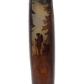This design belongs to a documented series of war-themed vases produced by the Établissements Gallé during the spring and early summer of 1915 and exhibited at the Gallé shop in Nancy in August of that year, as reviewed by the art critic Émile Nicolas in L’Étoile de l’Est (8 August 1915). The subject relates to the Vosges front, notably the battles of the Hartmannswillerkopf, and the distinctive beret worn by the figures firmly dates the design to the early phase of the conflict, prior to the introduction of helmets in 1916.