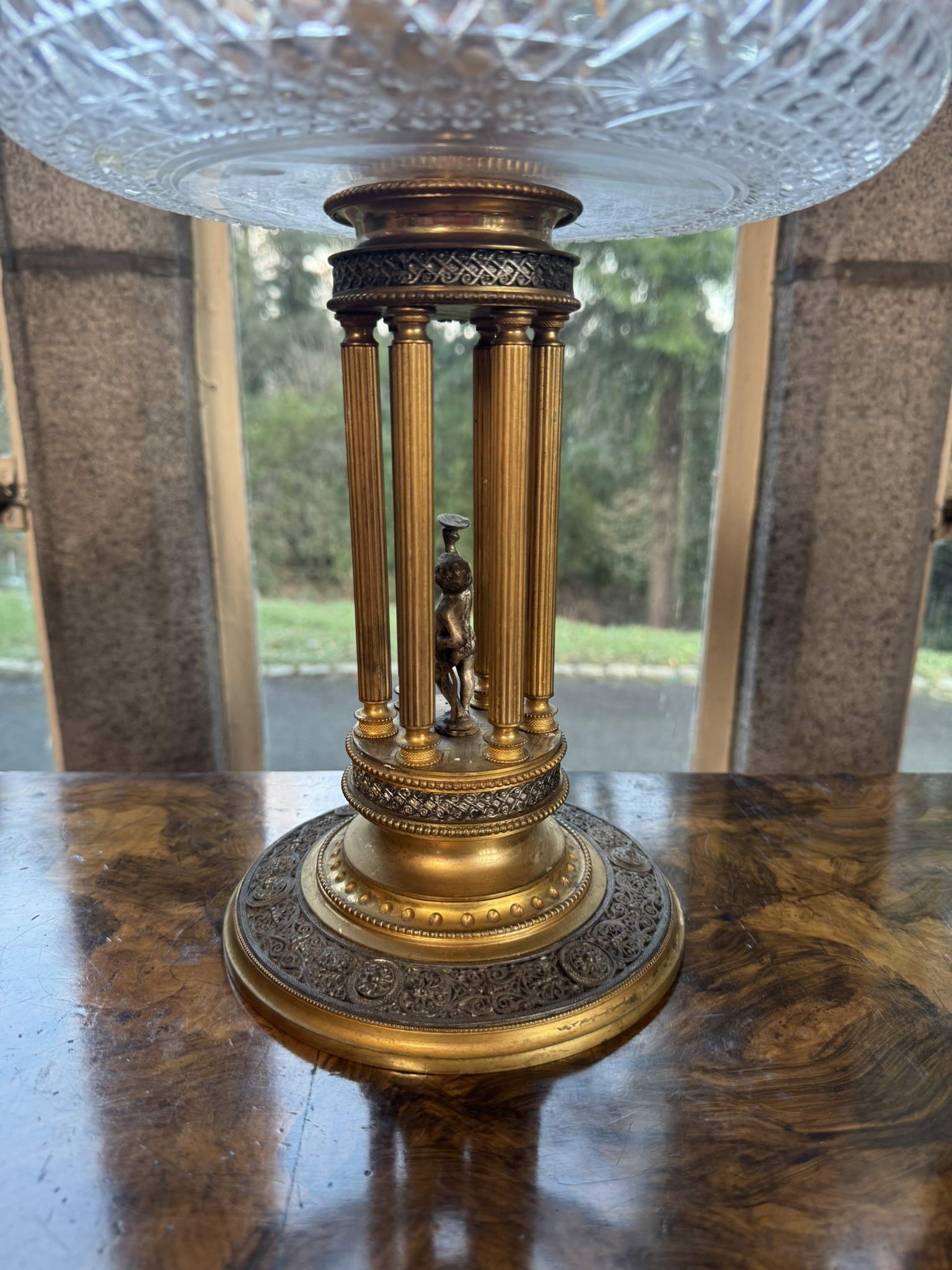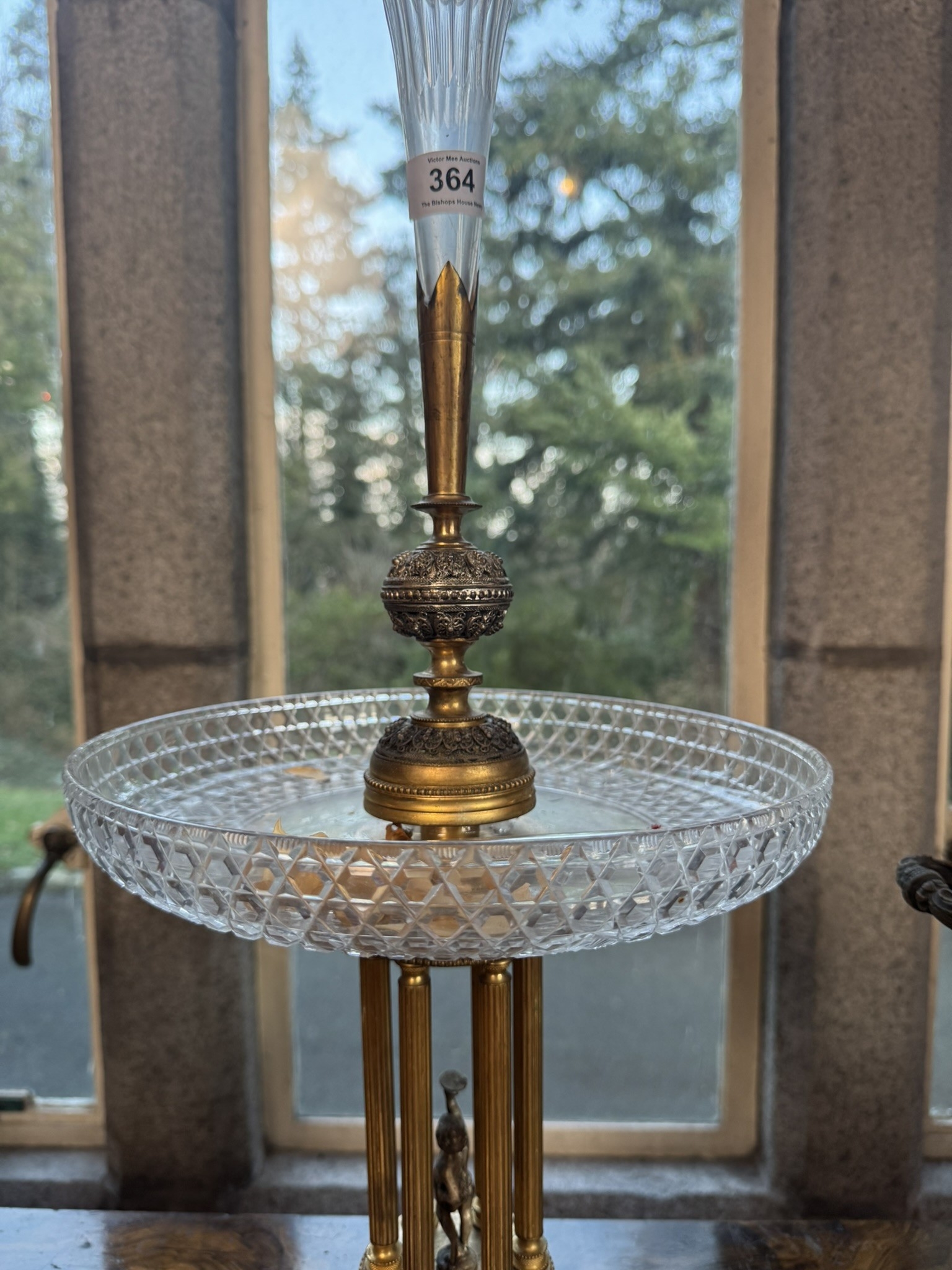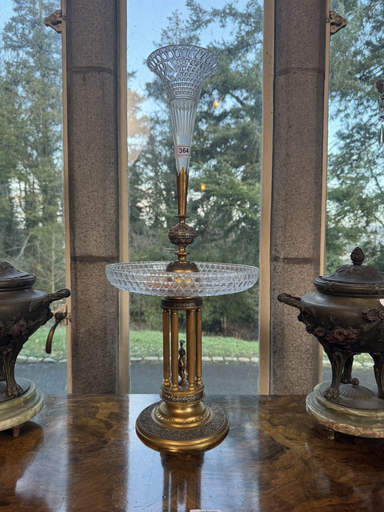 Early 20th C. Gilded metal and cut crystal centrepiece. {63 cm H x 27 cm Dia.}