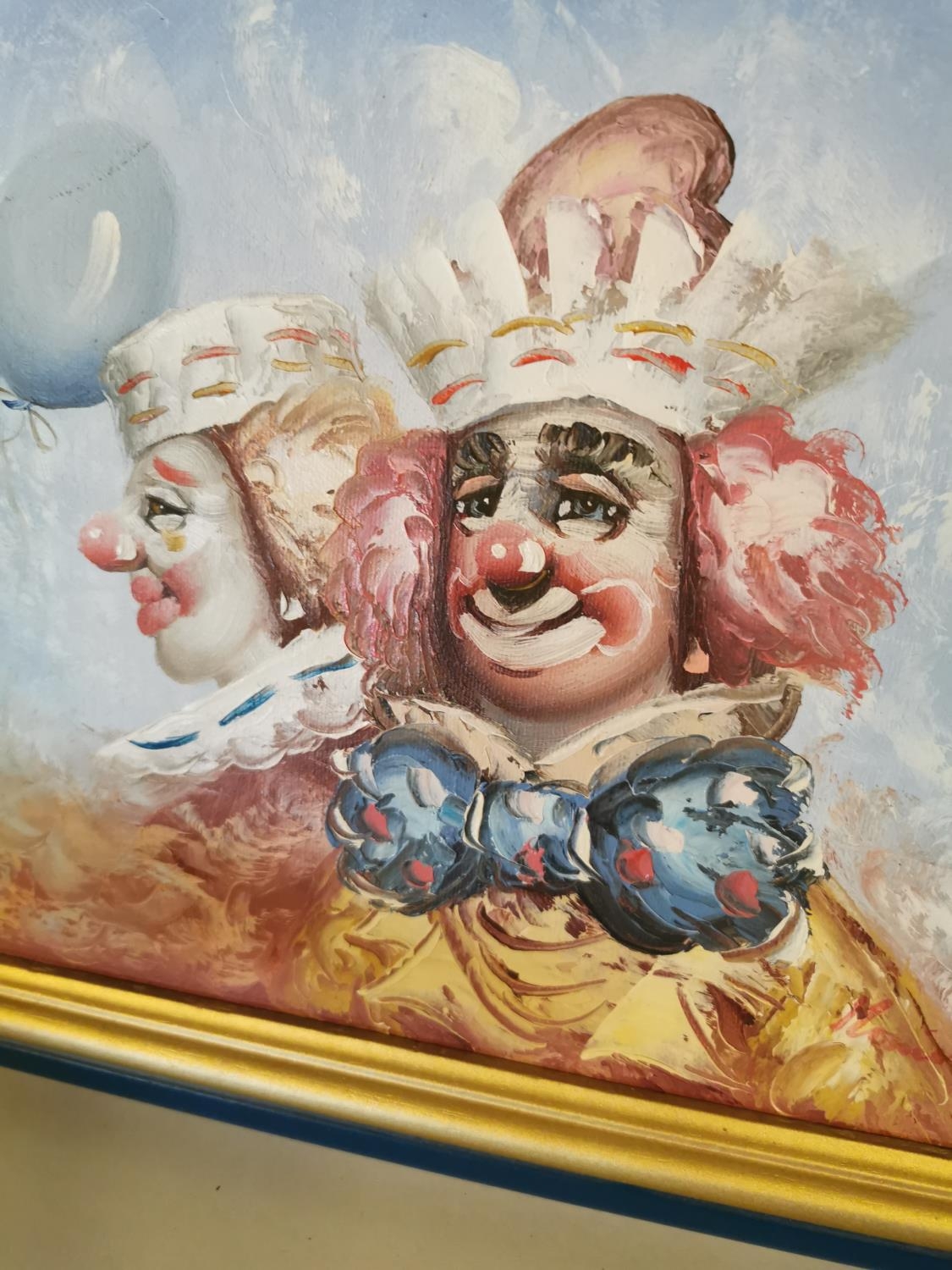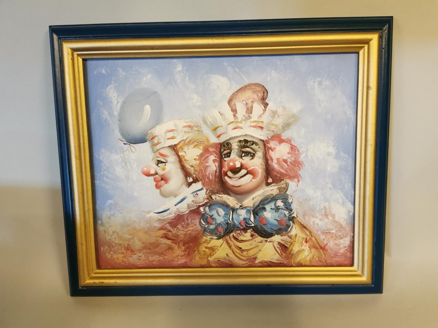Oil on canvas The Clown's mounted in gilt frame {27 cm H x 32 cm W}.