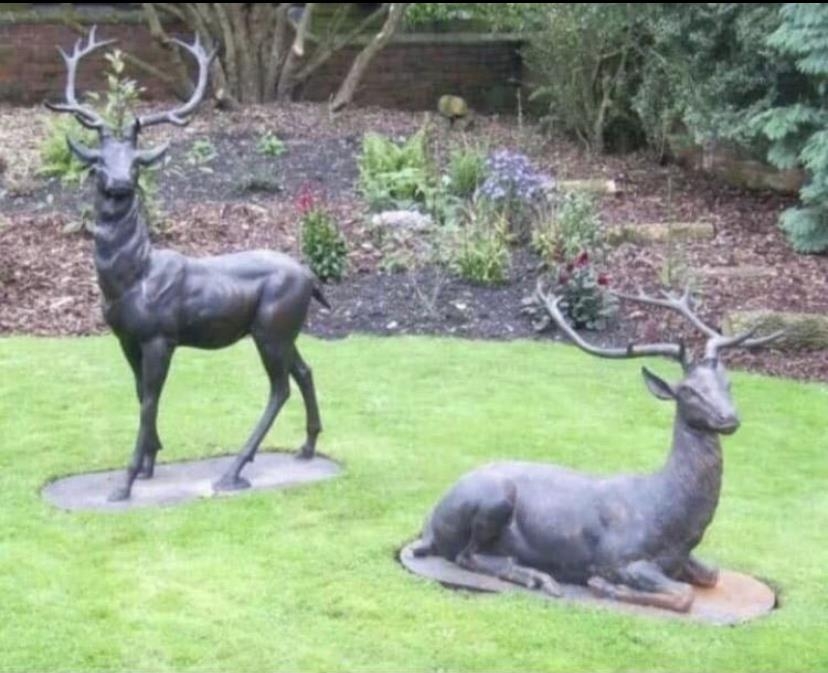 Two decorative cast iron models of Stags {Standing stag is 152 cm H}.