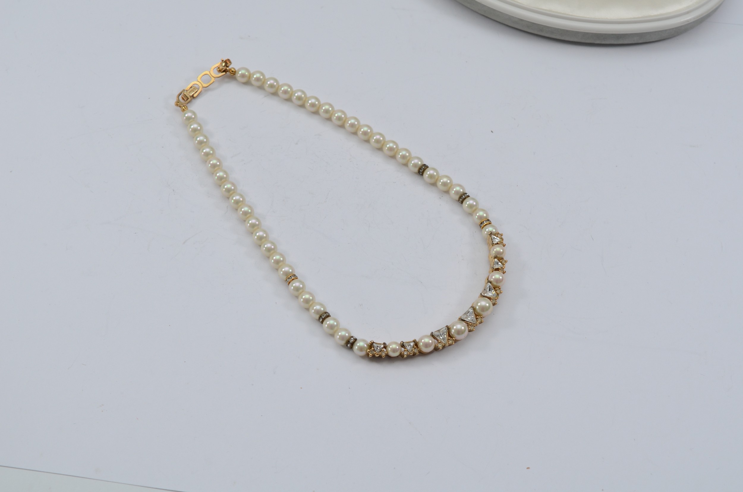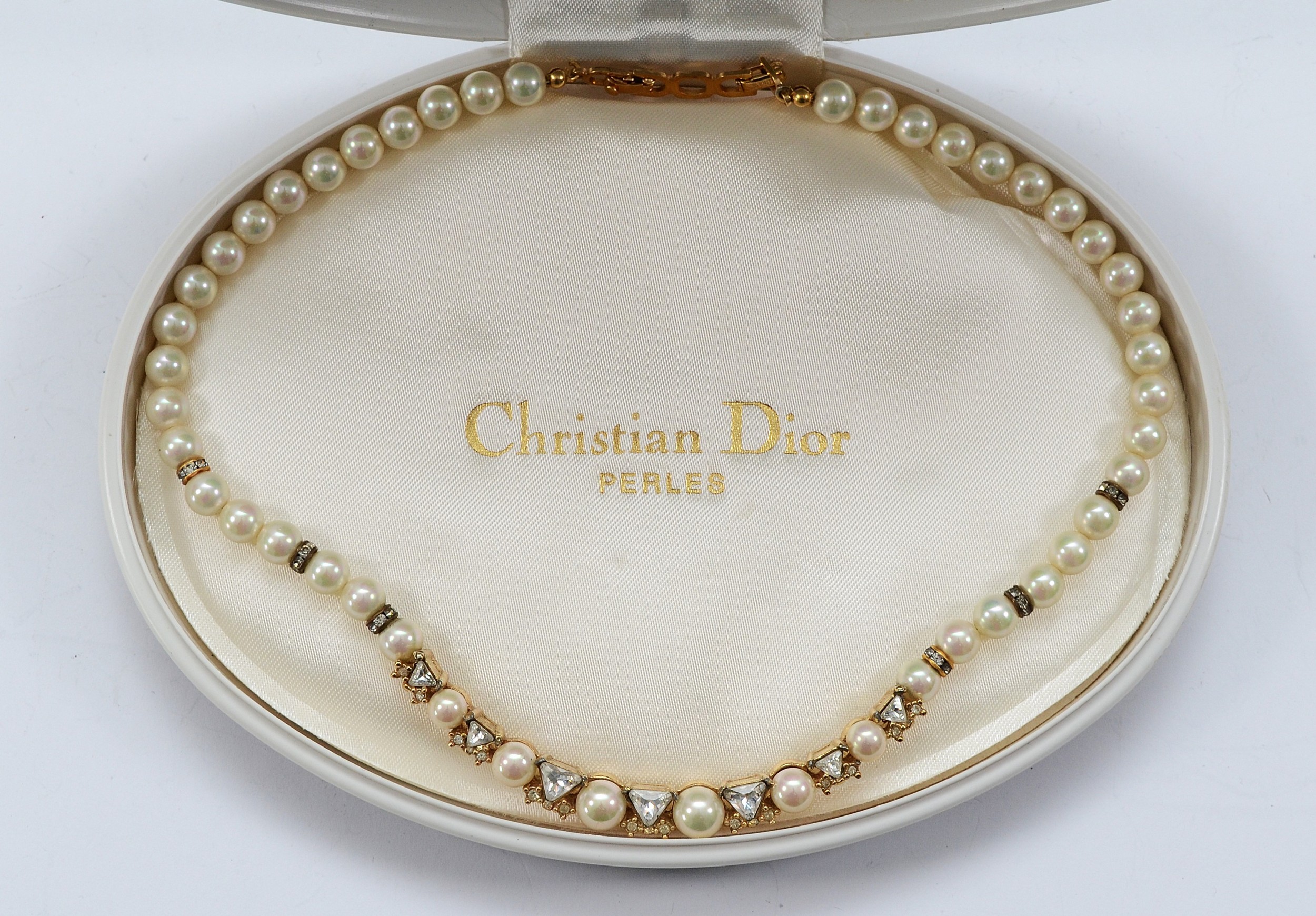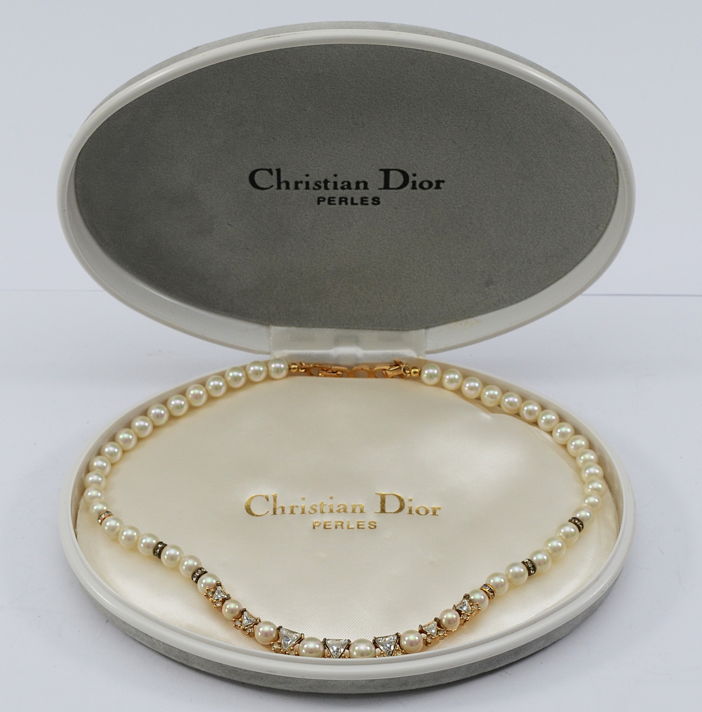 Christian Dior, an imitation pearl and gemset necklace, with box, 36g