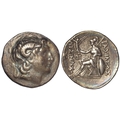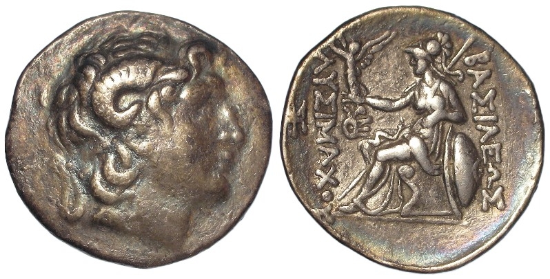 Ancient Greek: Lysimachos silver Tetradrachm 297-281 BC. Hd. of Alexander the Great wearing horn of Ammon r. / Athena seated left holding Nike. Variety SNG Berry 403 var. (monogram to outer left), see Meydancikkale 2595-6. 16.42g, F/VF.