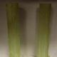 Pair of Victorian overlaid vaseline glass vases of slender form, 11.75in. high.