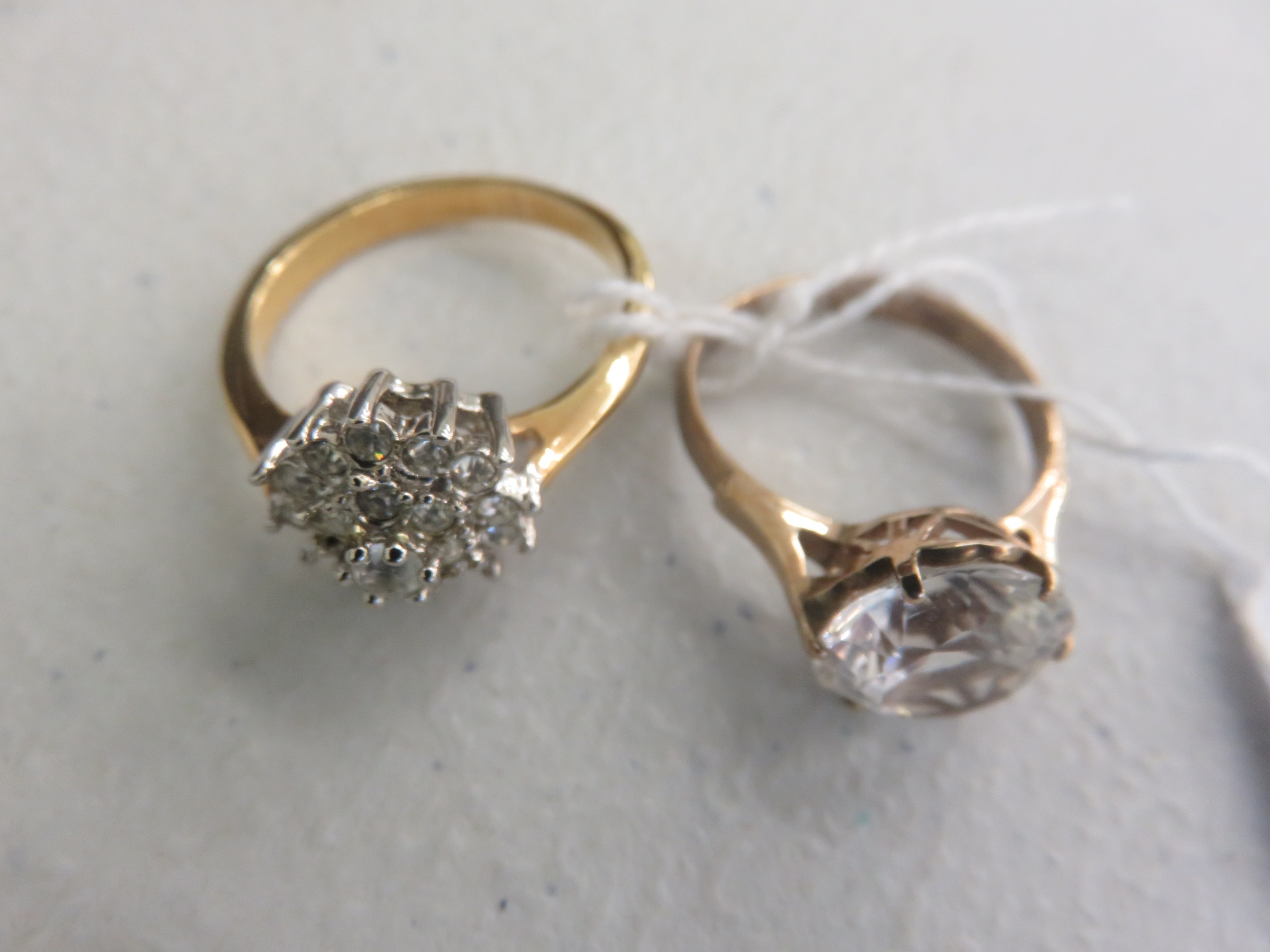 9ct. Gold Dress Ring with large white Stone and a White Stone Cluster Ring