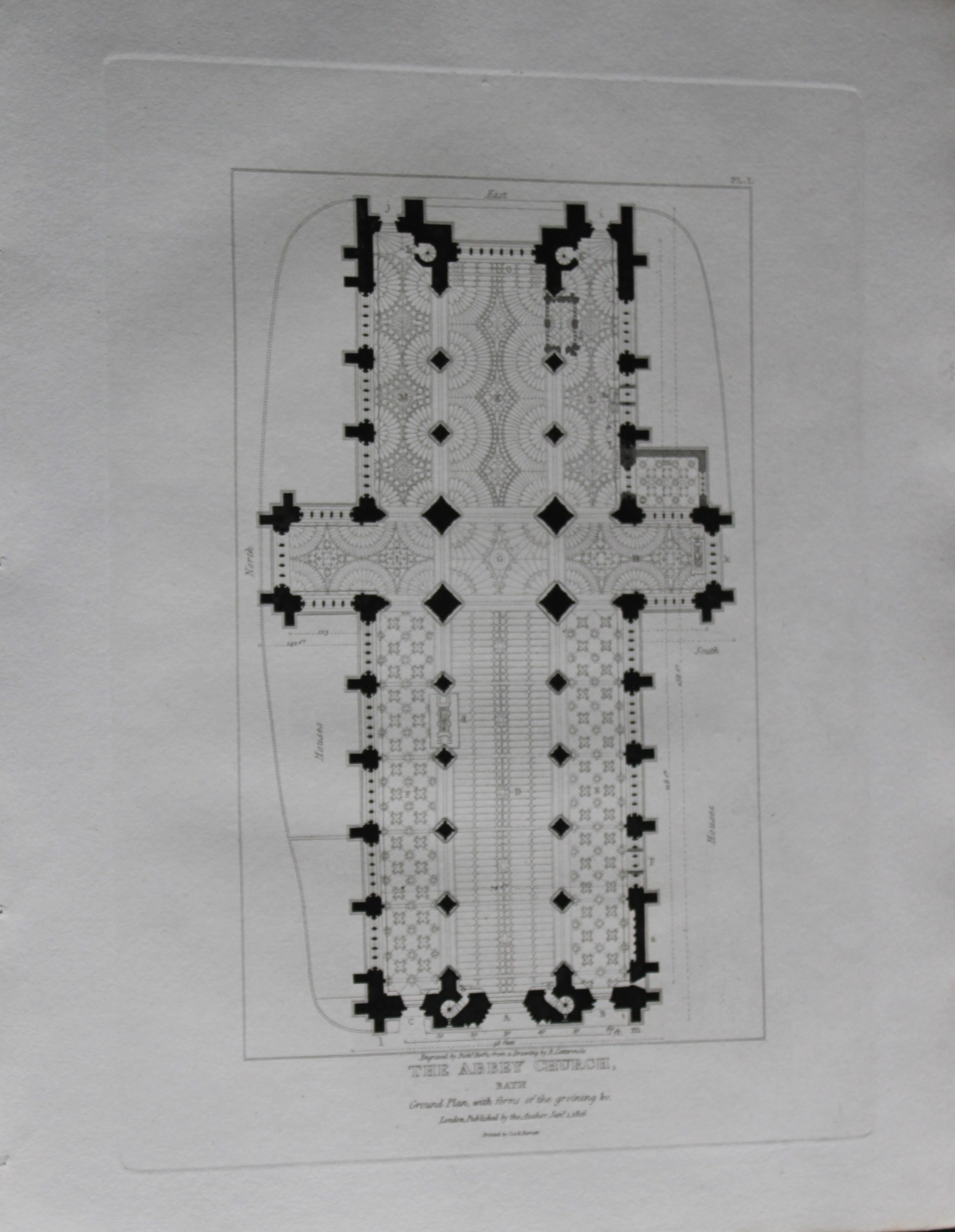 R Cattermole - Plan of Bath Abbey Church engraved by R Roffe 1816. Original engraving of the Plan of the Ground Floor of Bath Abbey Church by R Roffe after R Cattermole. Published by John Britton, London 1816.