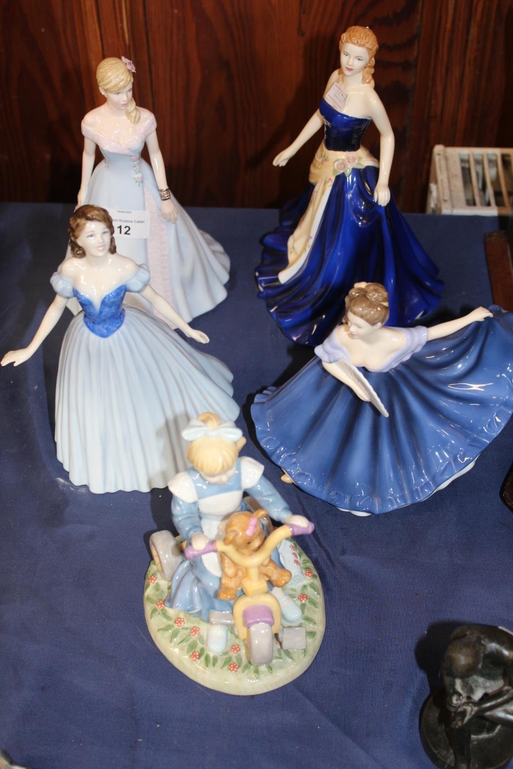 Royal Doulton figurines to include Pretty Ladies Olivia HN5114, Charlotte HN4758, Deborah HN4468, Off We Go and Elaine HN4718. (5)