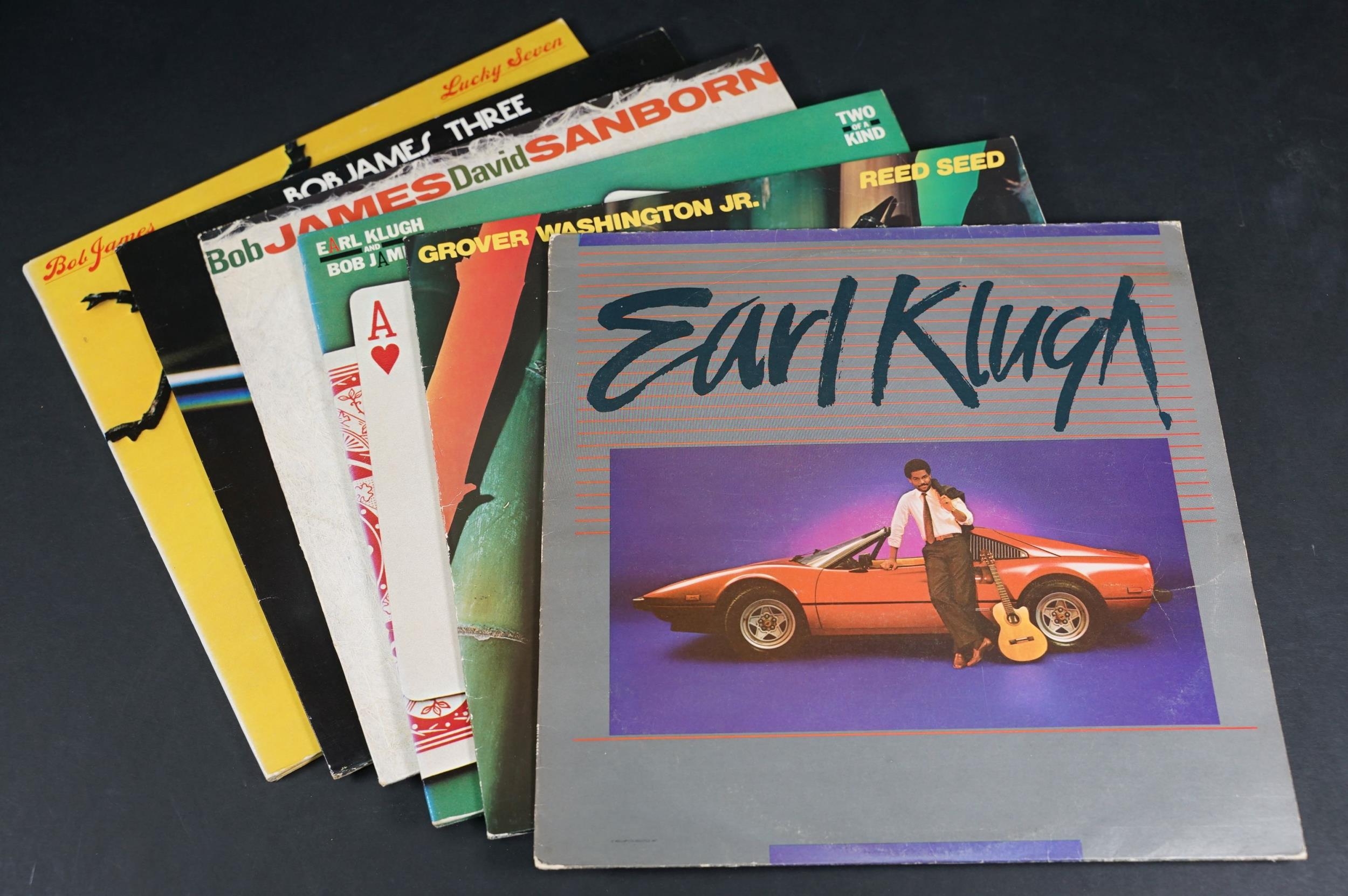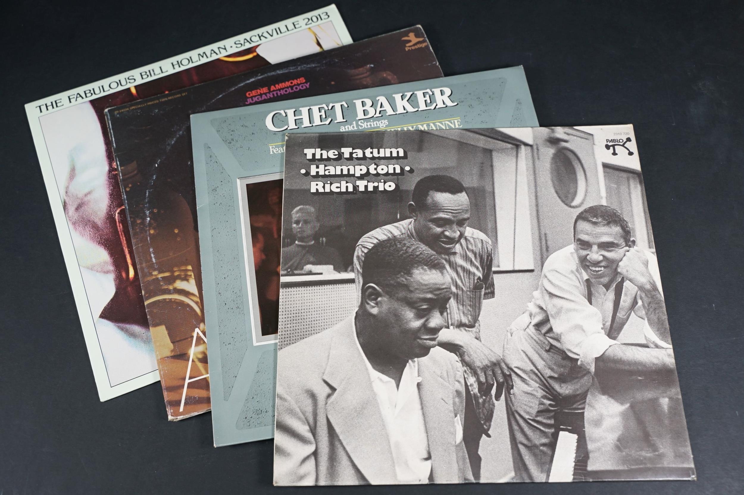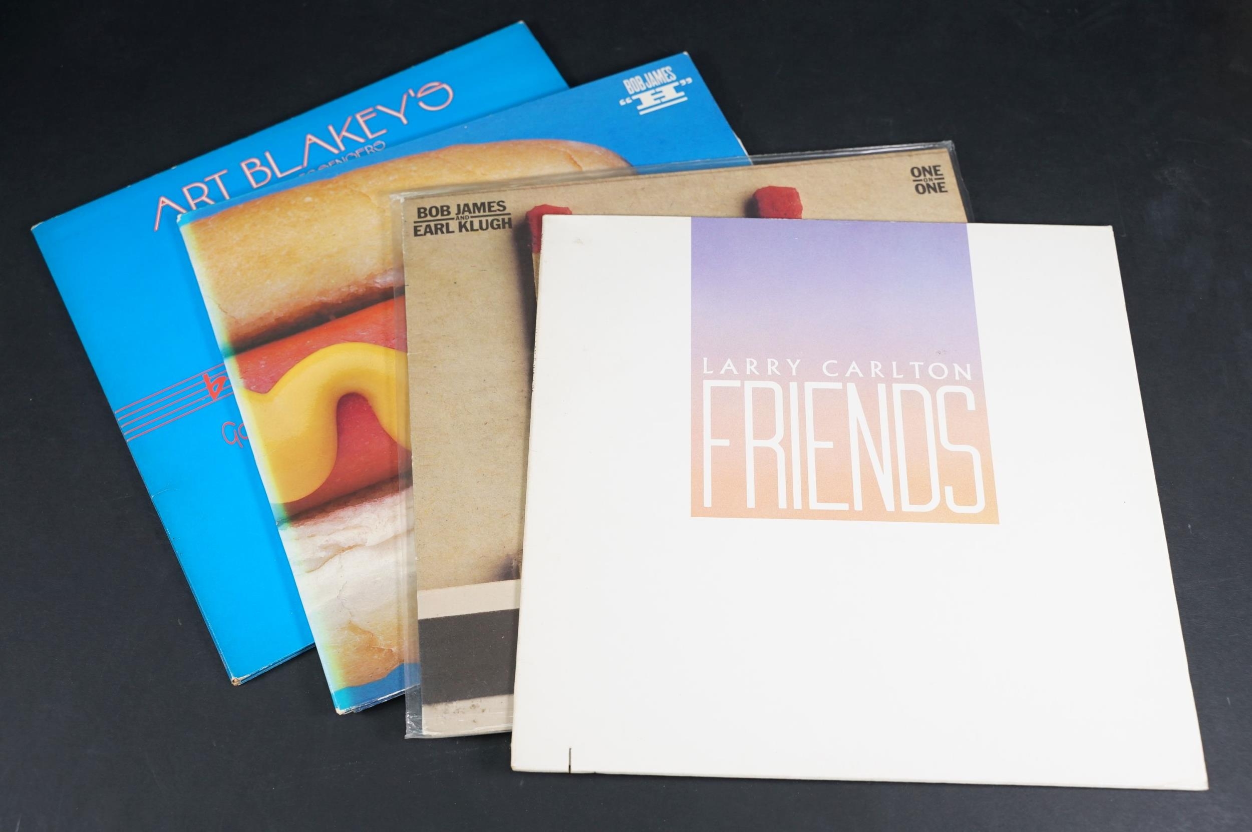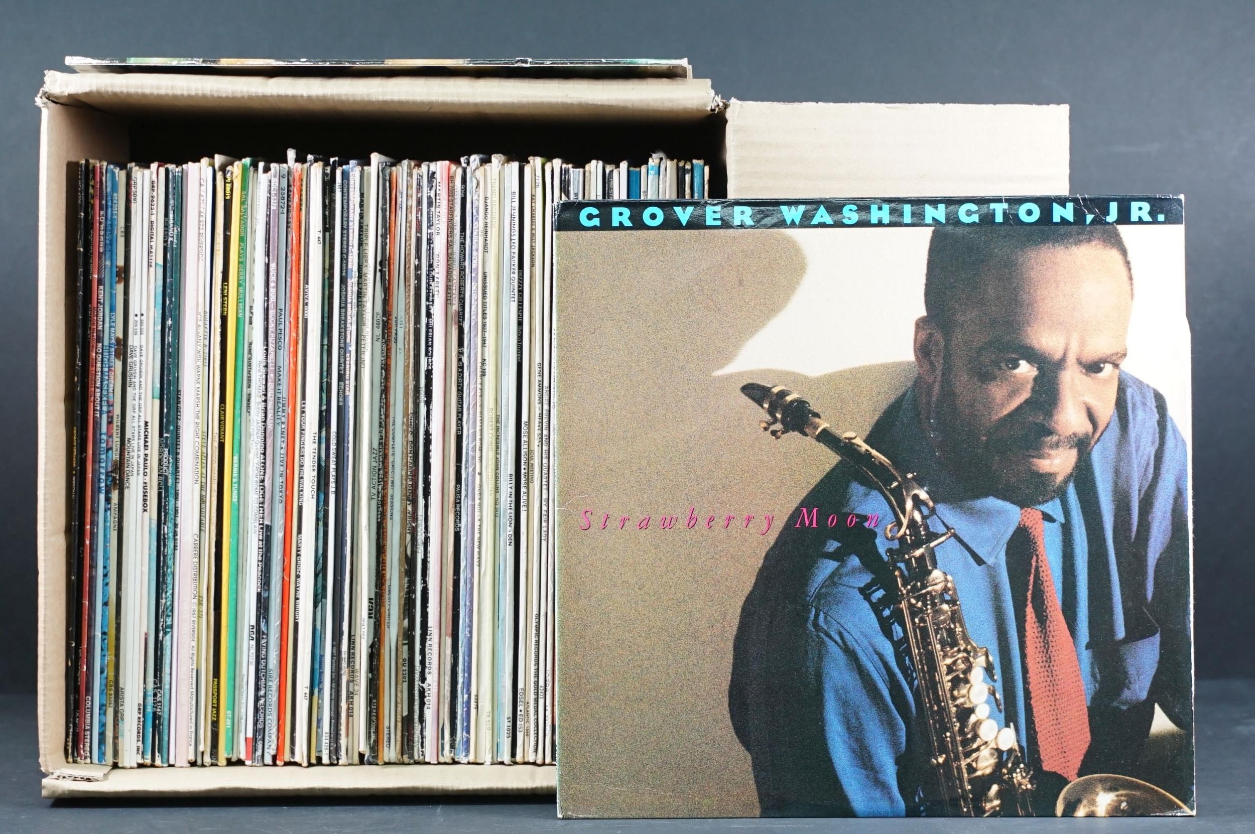 Over 70 Jazz / Modern Jazz / Jazz Fusion / Hard Bop LPs featuring foreign pressings to include Grover Washington Jr, Earl Klugh, Bob James, Larry Carlton, Art Blakey, Chet Baker, The Tatum Hampton Rich Trio, Bill Holman, Ray Bryant, Boots Mussulli Quartet, Zoot Sims, Chico Hamilton, Coleman Hawkins, Gene Amons, Milt Jackson, Mose Allisson, Dizzie Gillespie, Bill Jennings, Clarence Clemons, Robert Conti, Django Reinhardt, Charlie Byrd and more. Vg+ overall