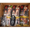 Hasbro Star Wars Episode 1. A boxed group of six 'Commtech' action figures: comprising Obi-Wan Kenobi, Queen Anidala, Anakin Skywalker and three Darth Maul variants, together with CommTalk base and a collection of loose chips.