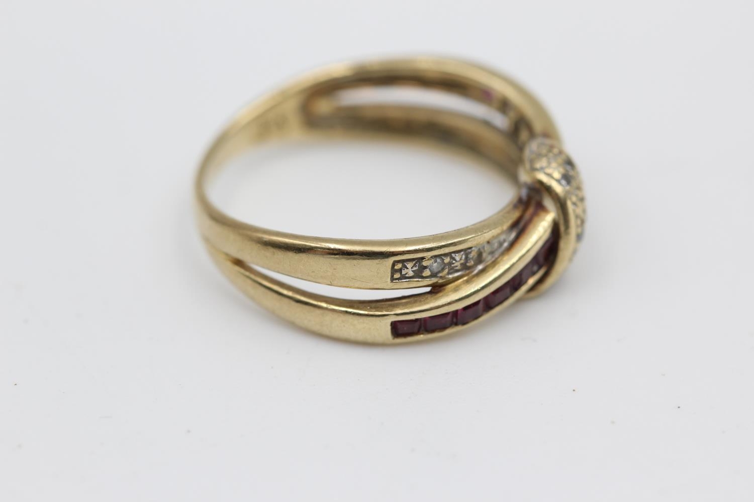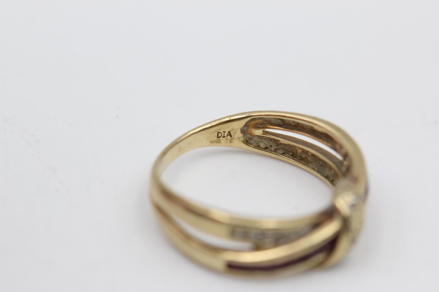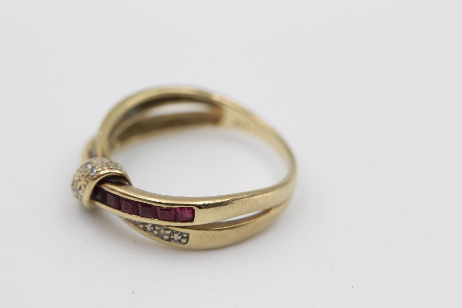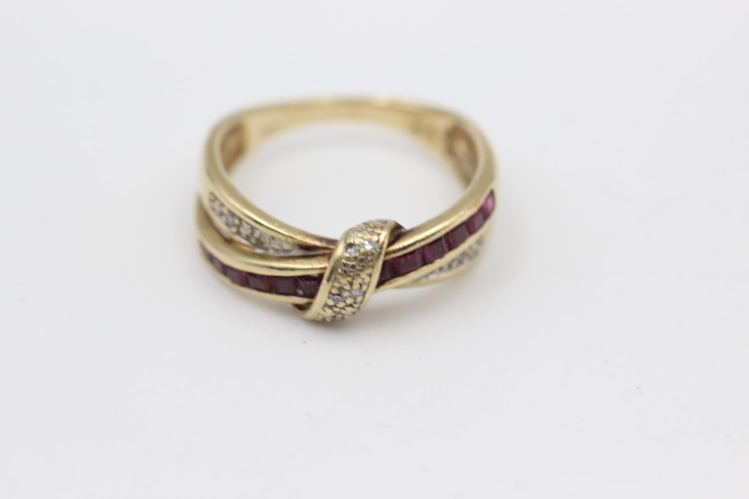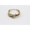 9ct gold diamond & ruby cross over ring (2.5g) Size L