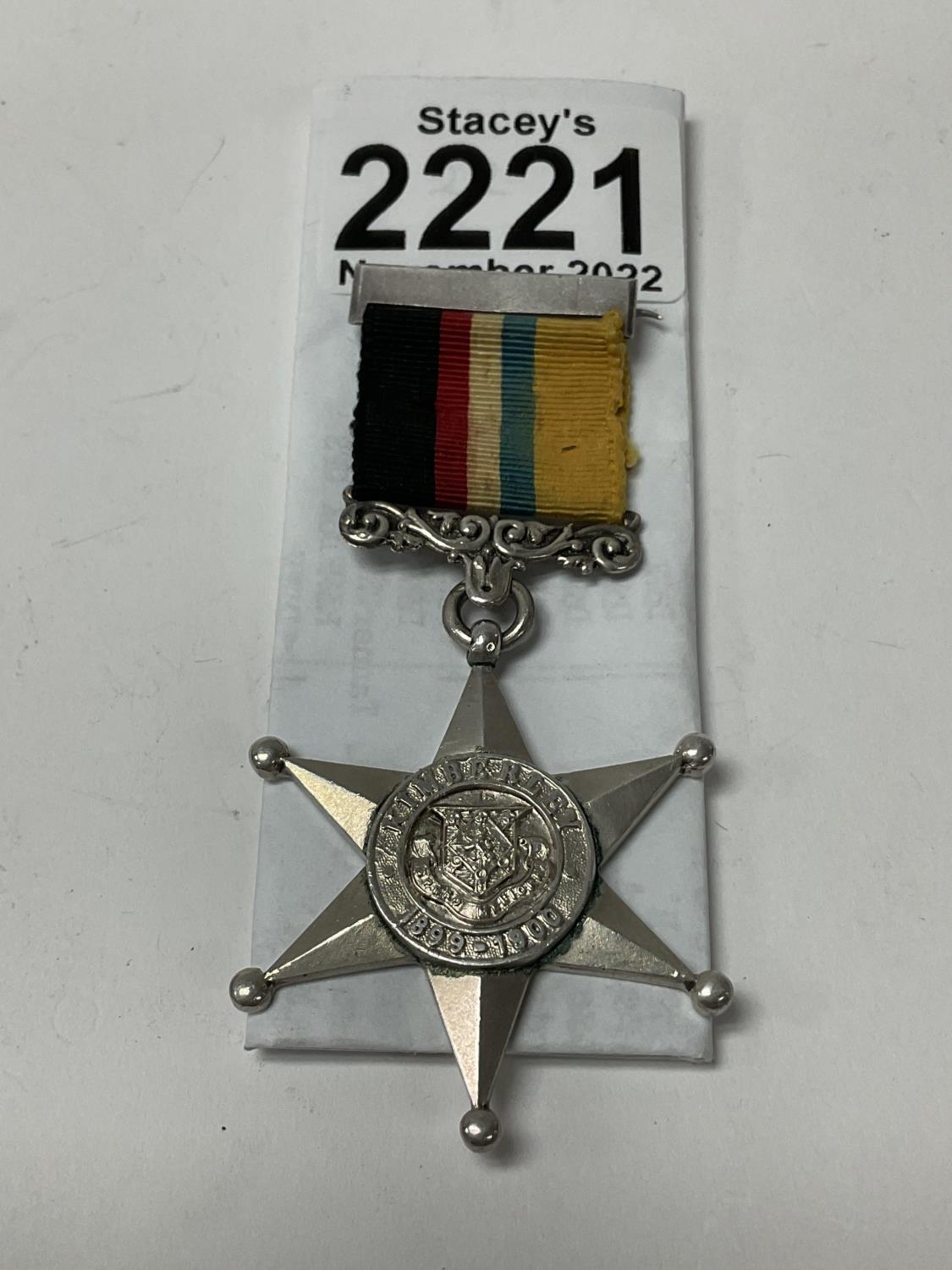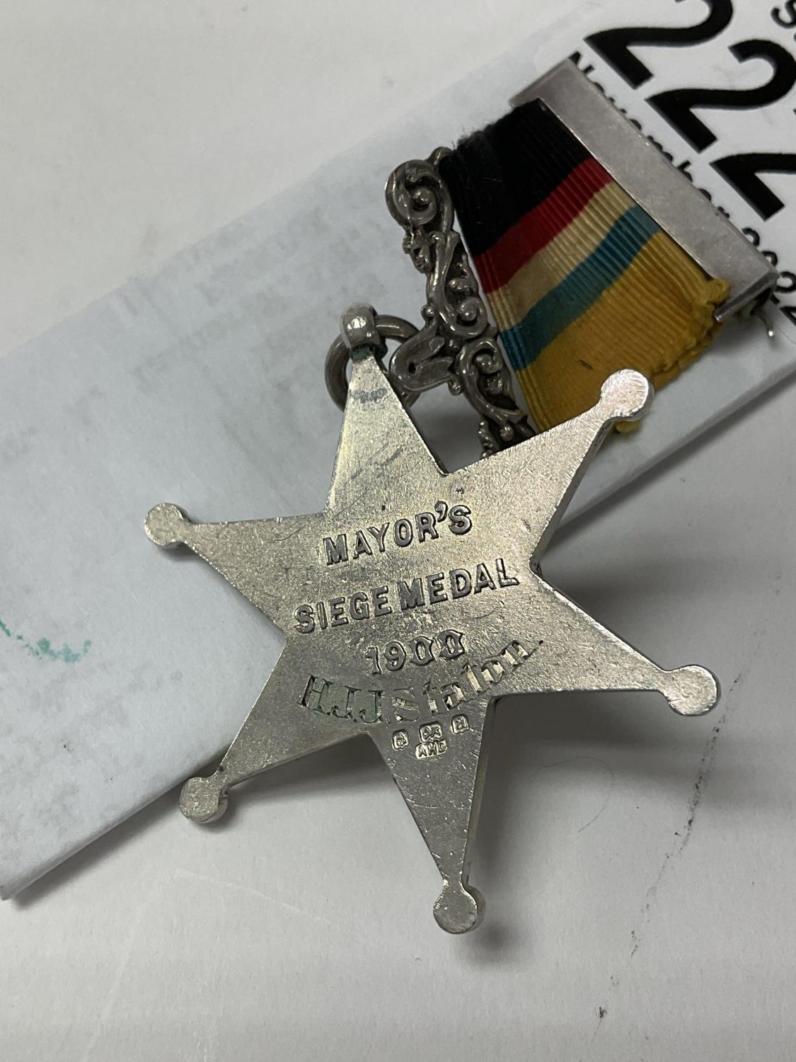 The Kimberley Star 1899-1900, 'Mayor's Siege medal 1900', hallmarked Birmingham 1900, awarded to HJJ Staton, Kimberley town guard.