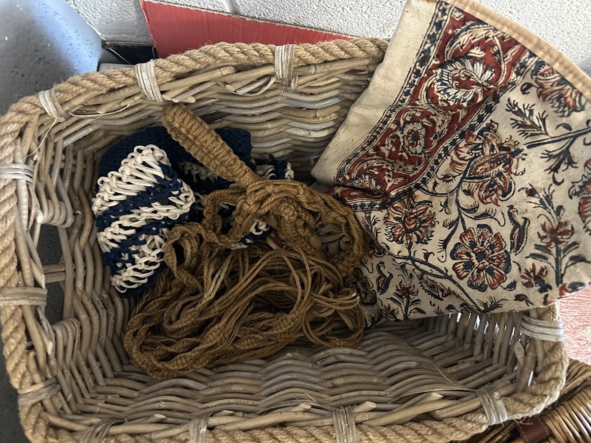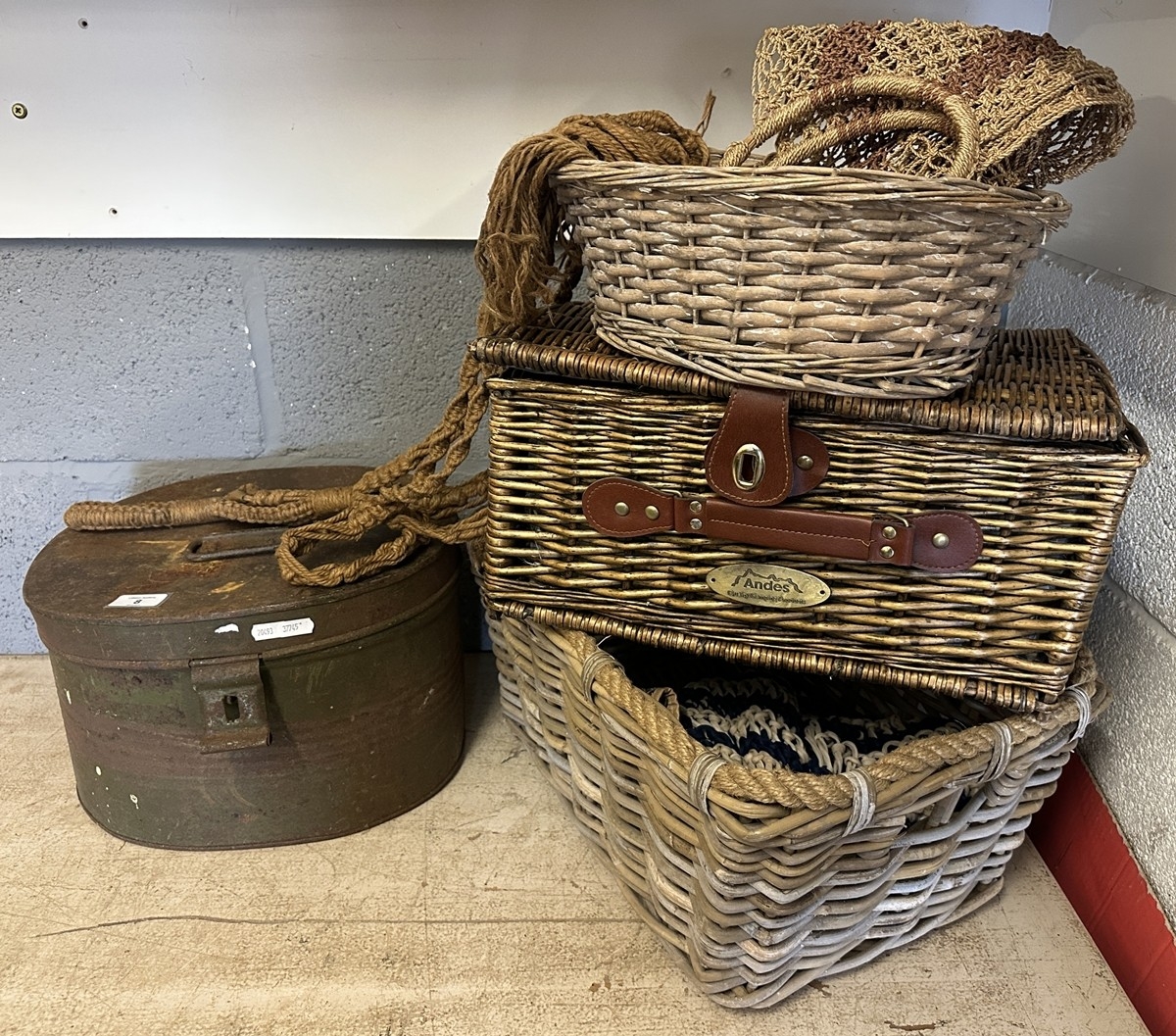 Collection of baskets together with hat box etc