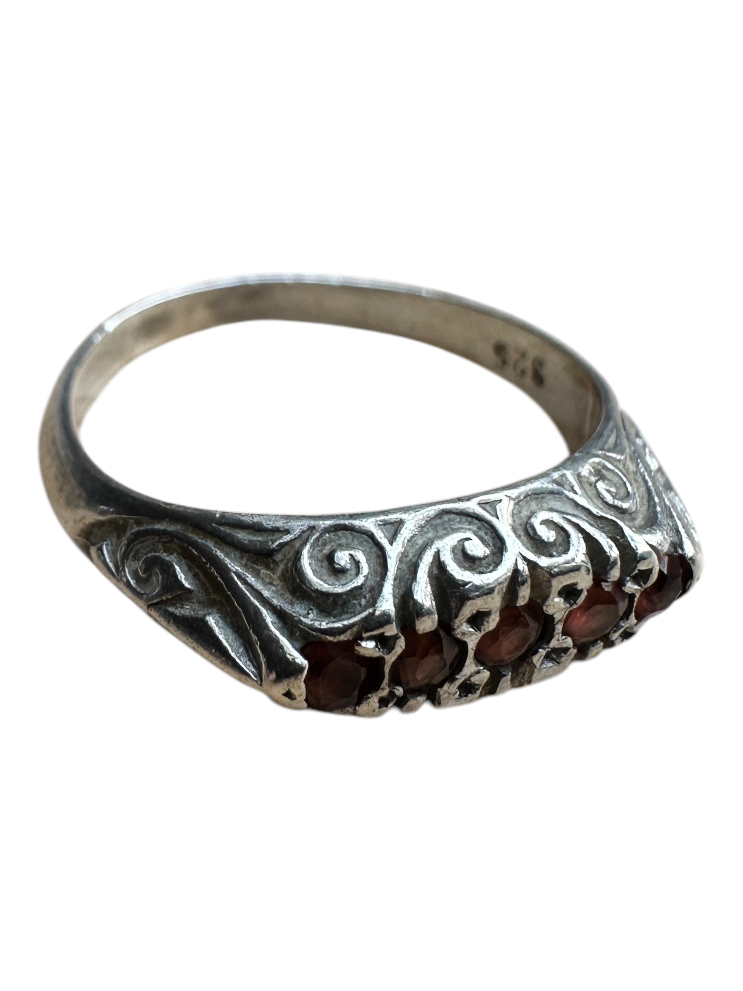 Antique Silver and Garnet Ring. Stamped 925. Size K