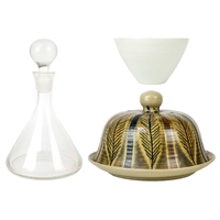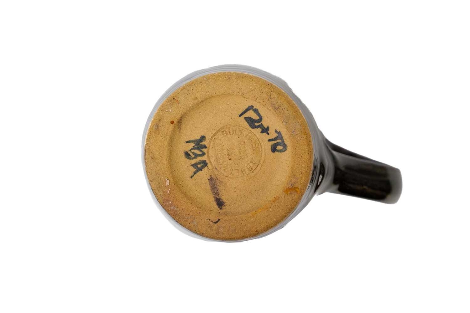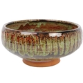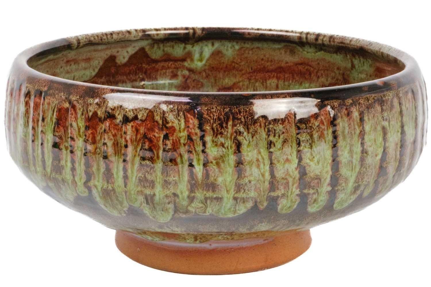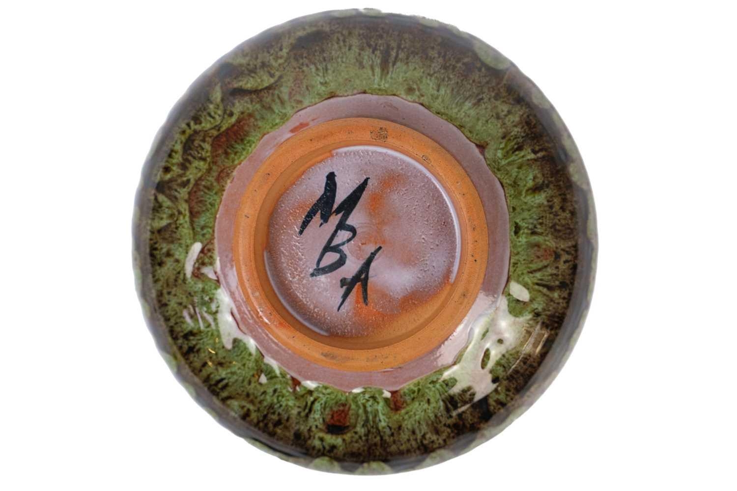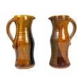 A collection of studio pottery. To include two bowls and a jug by Mary Gibson Horrocks of Buckfast Abbey studio pottery, two unmarked jugs in a brown glaze; together with a studio pottery vase marked to base and an art glass bowl. (7)