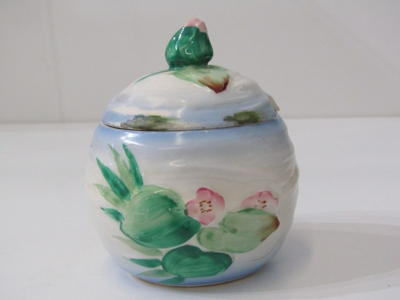 CLARICE CLIFF, Clarice Cliff floral decorated conserve with lid, 10cm height
