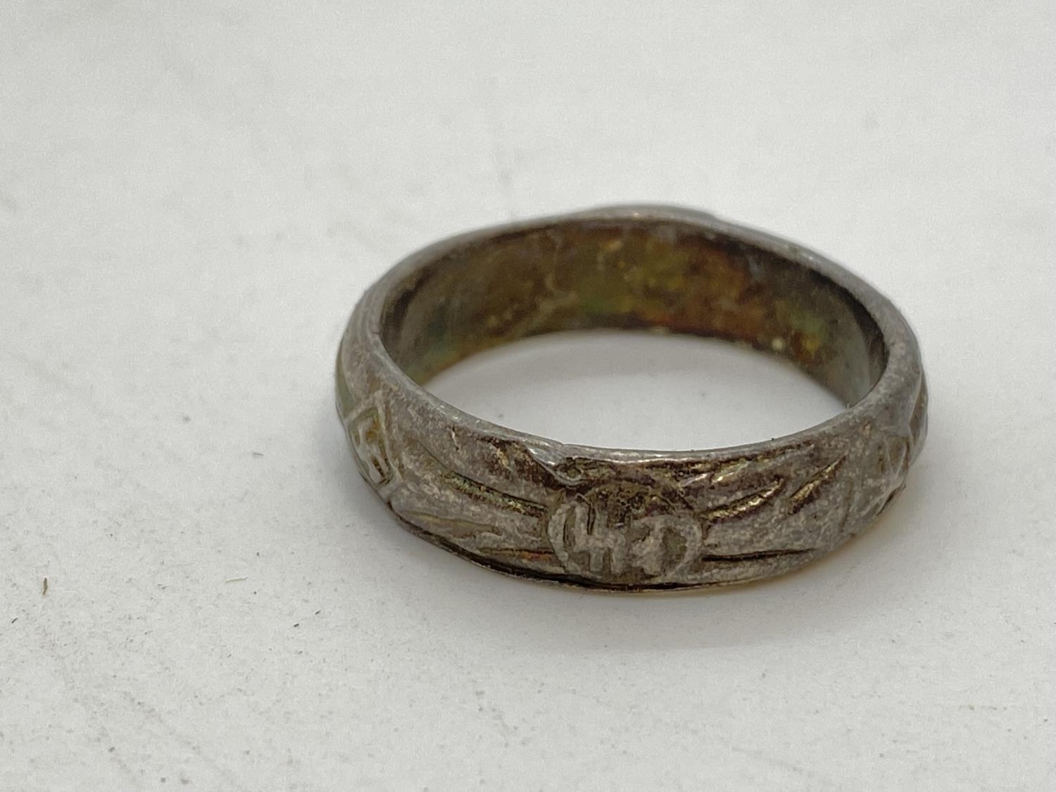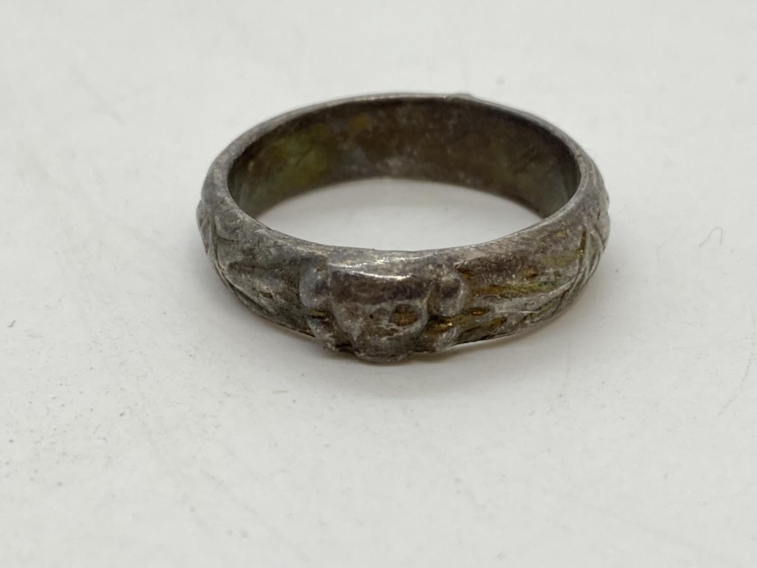 German WW2 SS interest a man's Honour ring Deaths Head engraved with Himmler dedication inside GVF