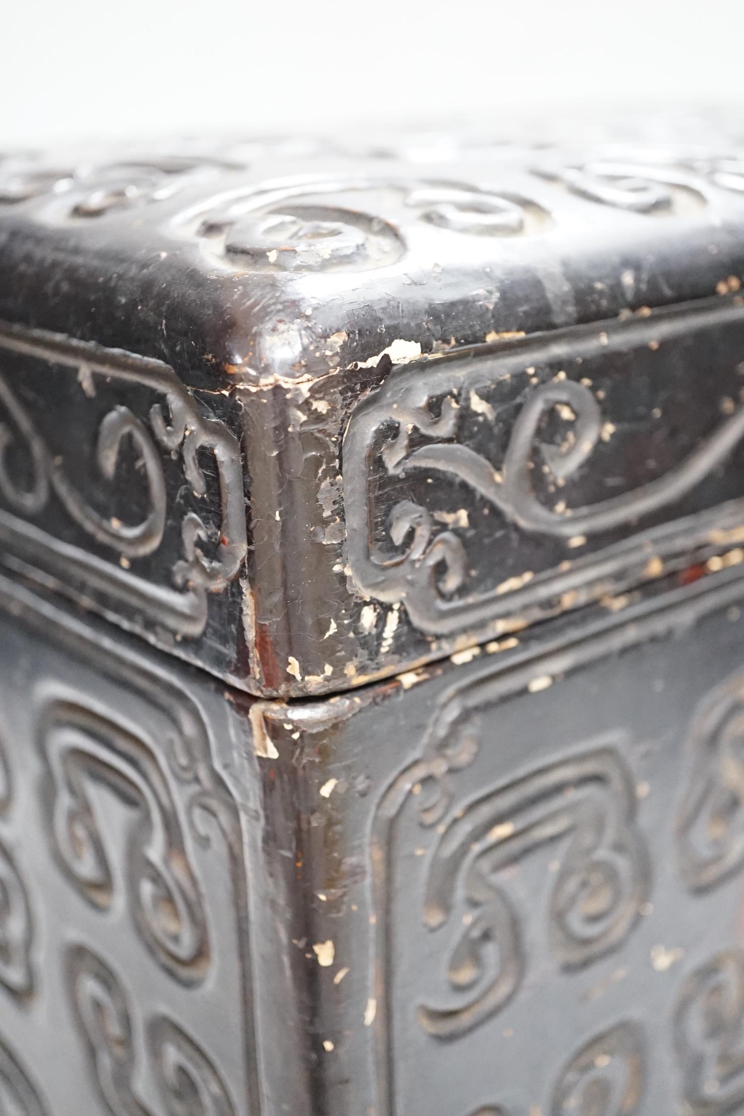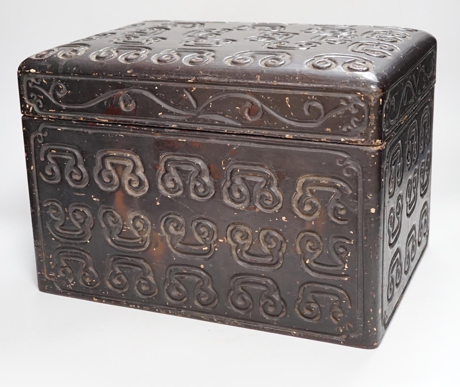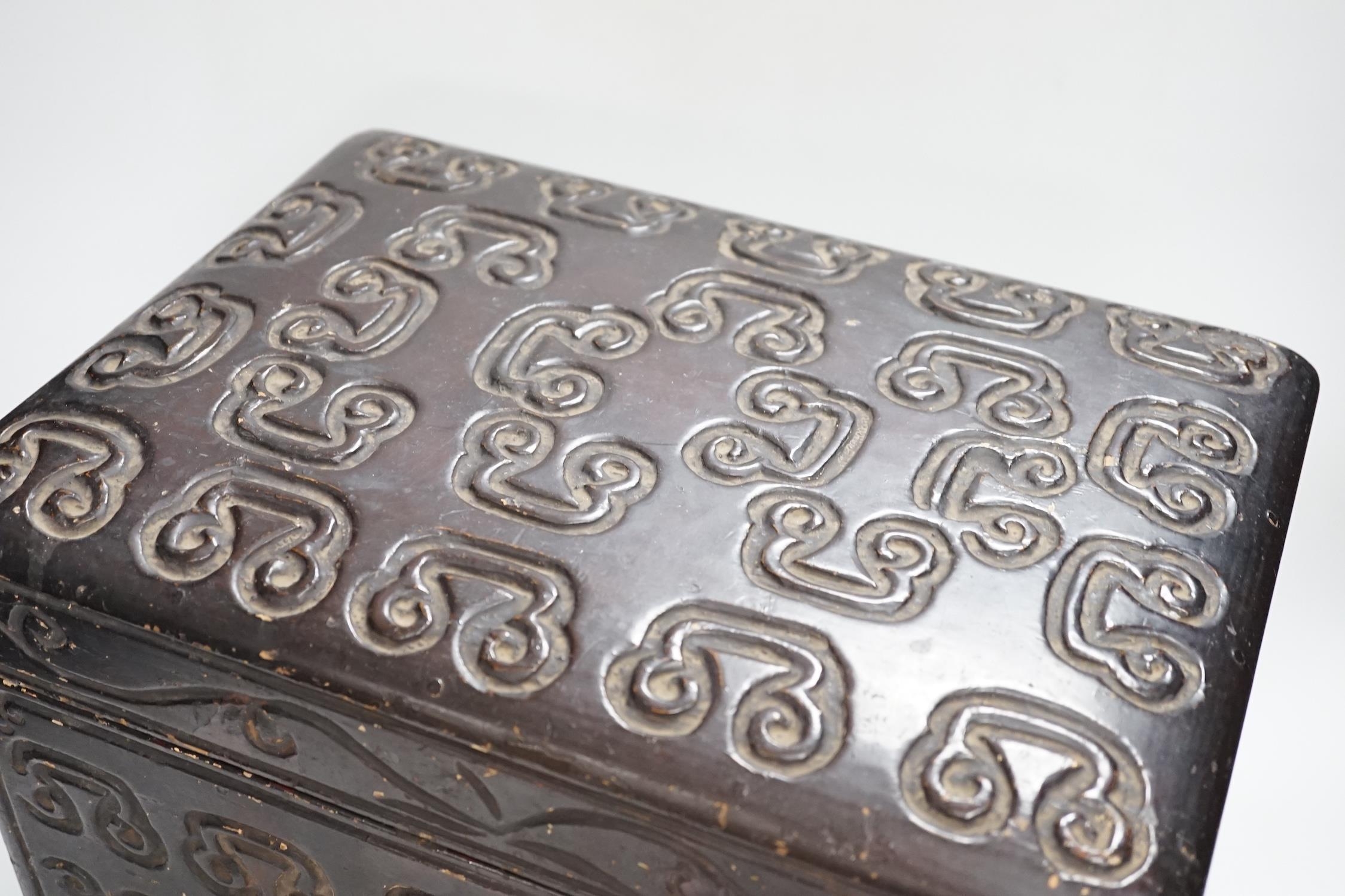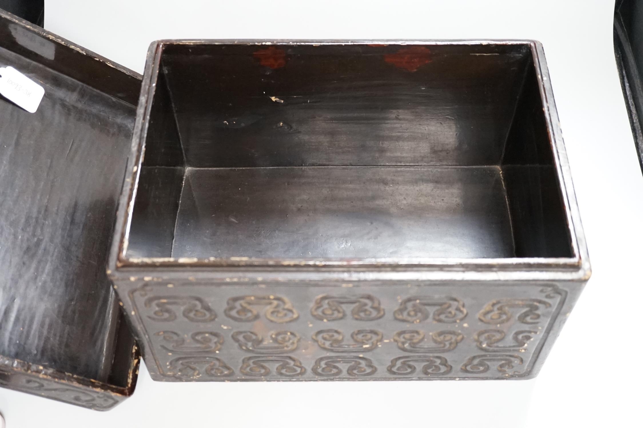 A Chinese tixi style lacquer box, 36cm wide, 26cm high