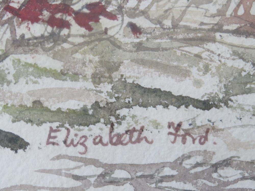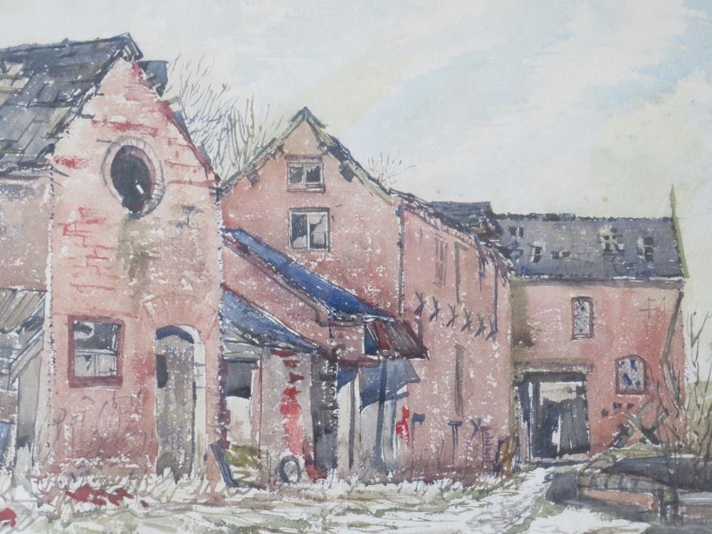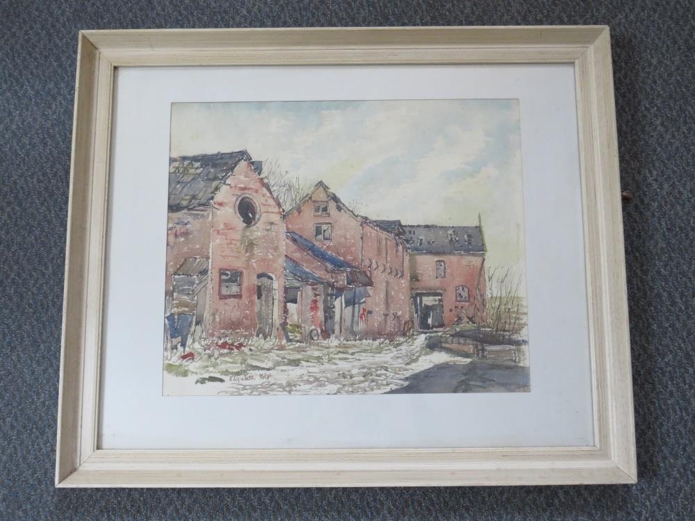 ELIZABETH FORD (XX). Staffordshire artist, study of derelict farm buildings, signed lower left, watercolour, framed and glazed, 37 x 44 cm