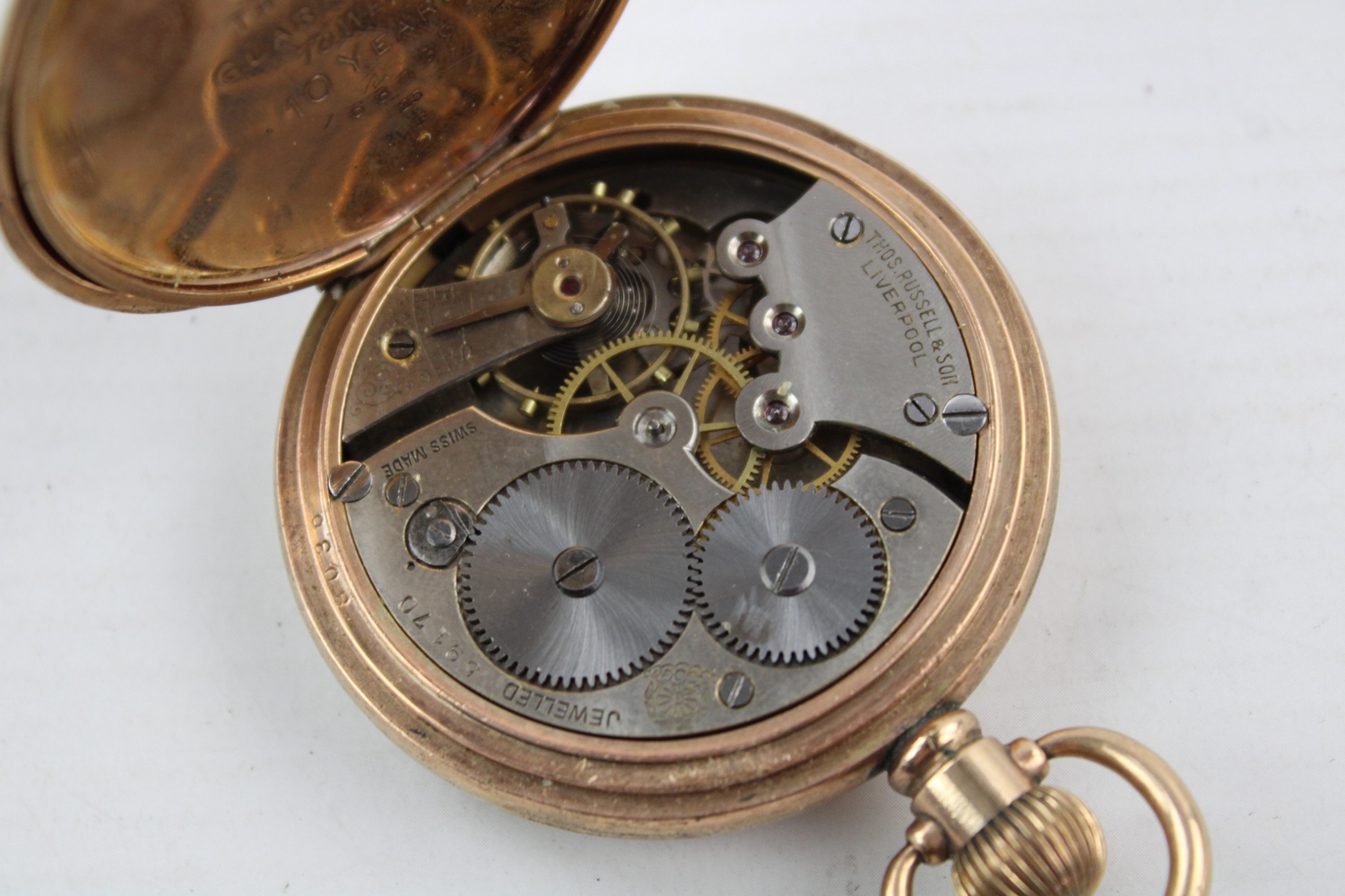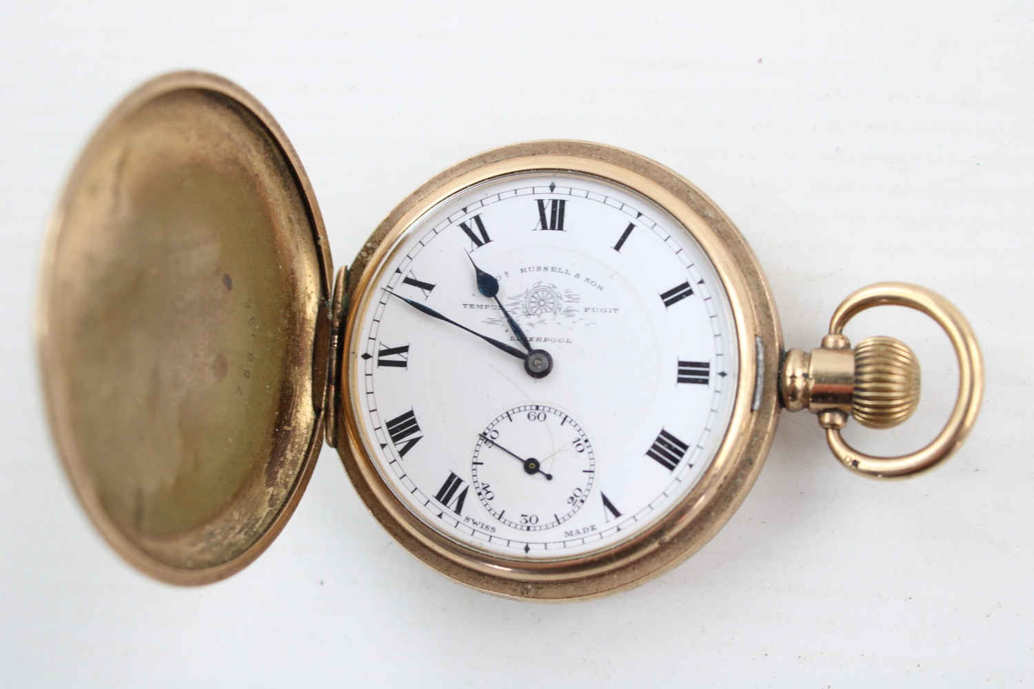 Vintage Gents THOMAS RUSSELL & SON Full Hunter Pocket Watch WORKING (108g)