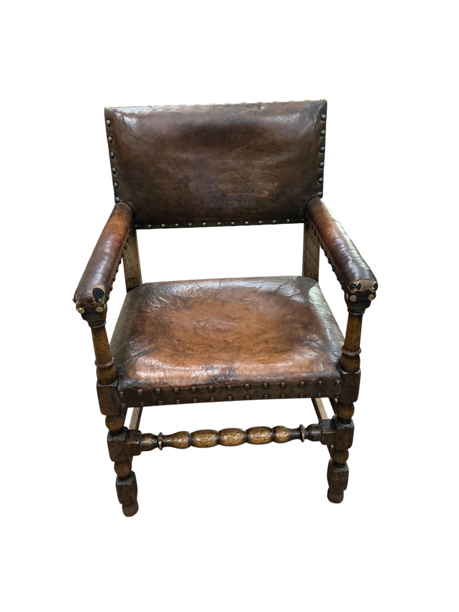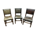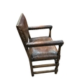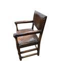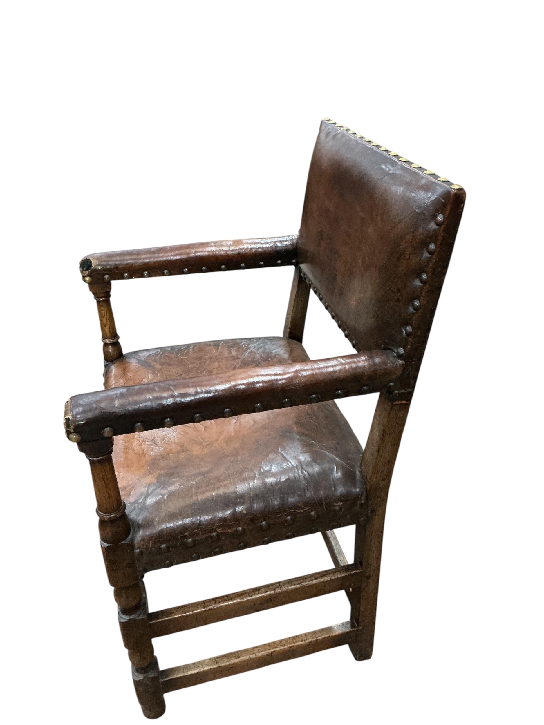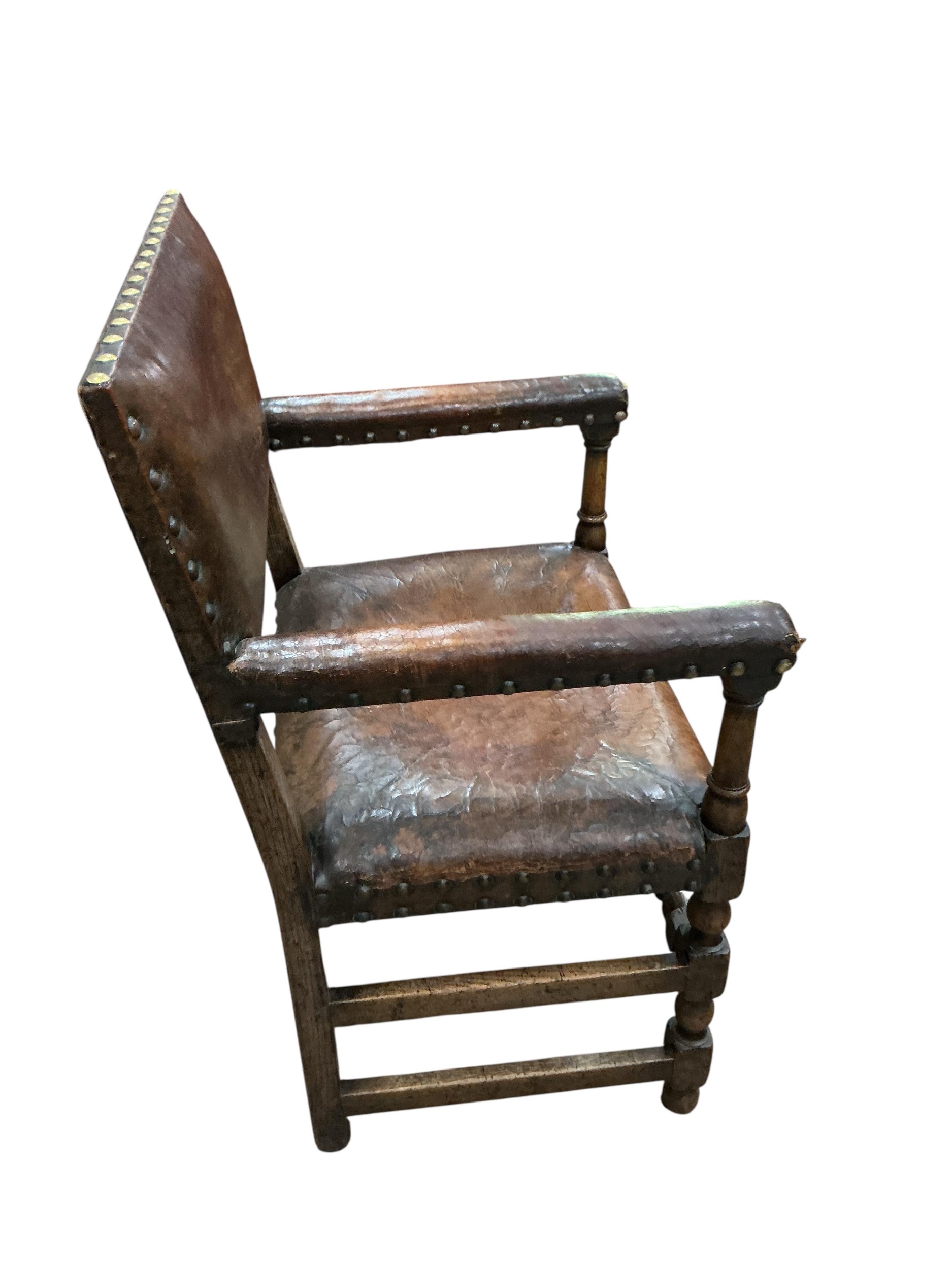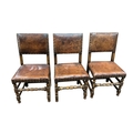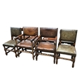 A set of eight Cromwellian style oak and tan leather dining chairs, two with arms