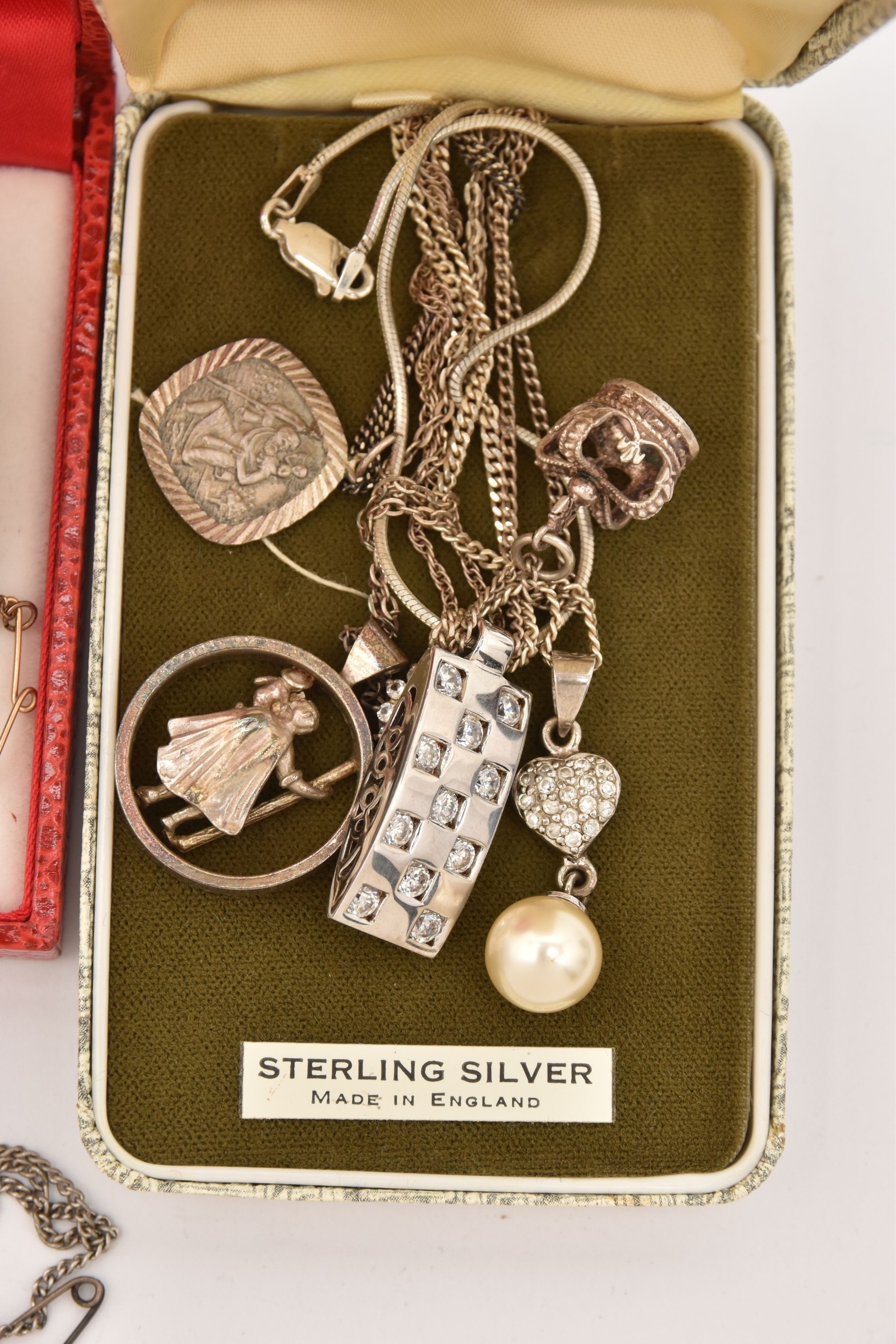 AN ASSORTMENT OF SILVER AND WHITE METAL JEWELLERY, to includ...