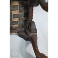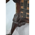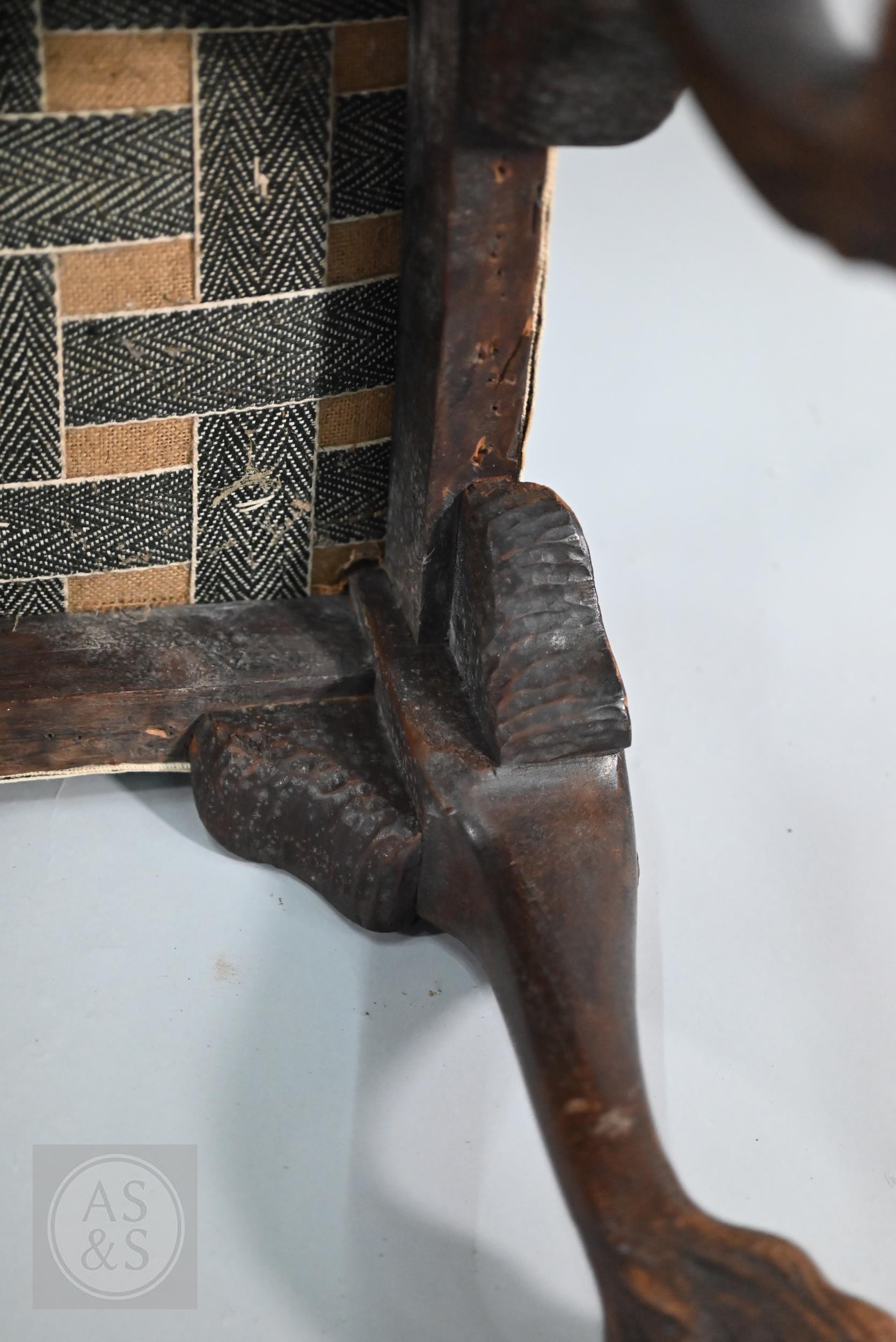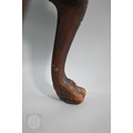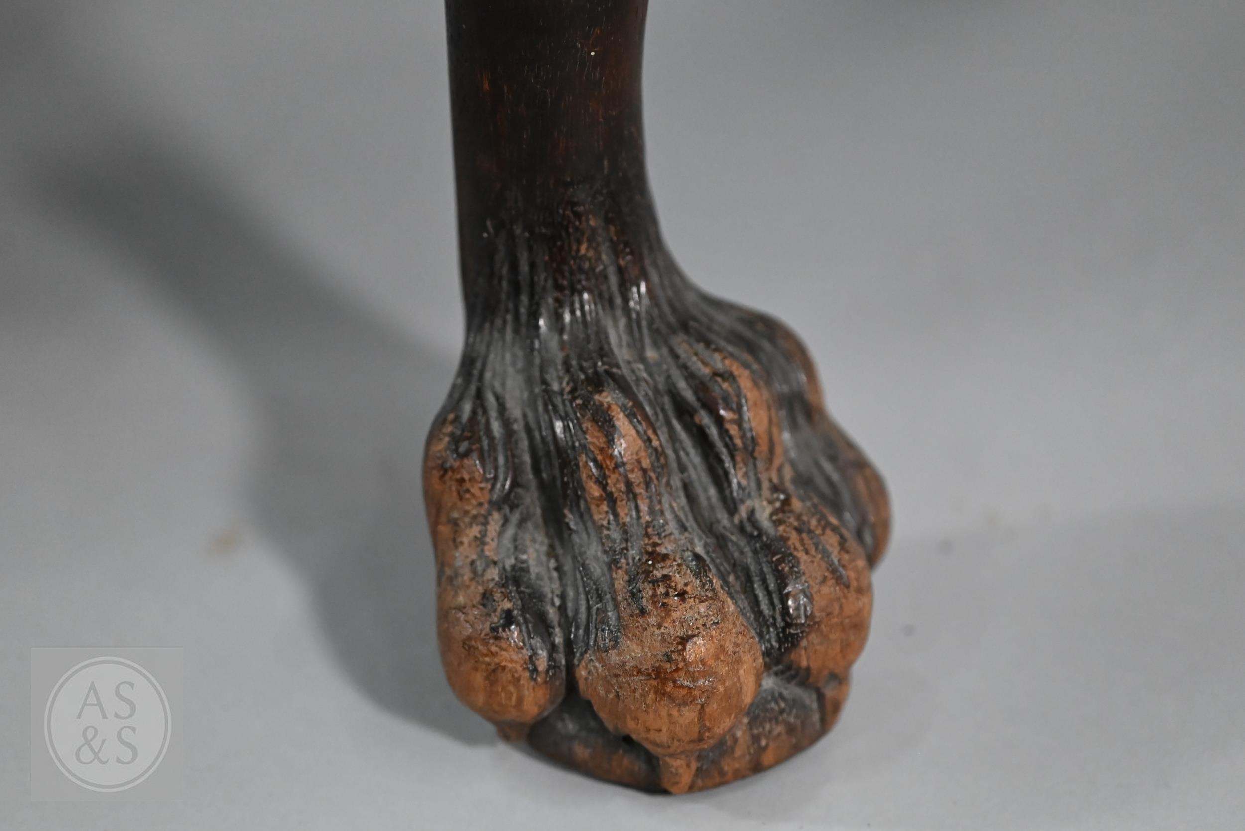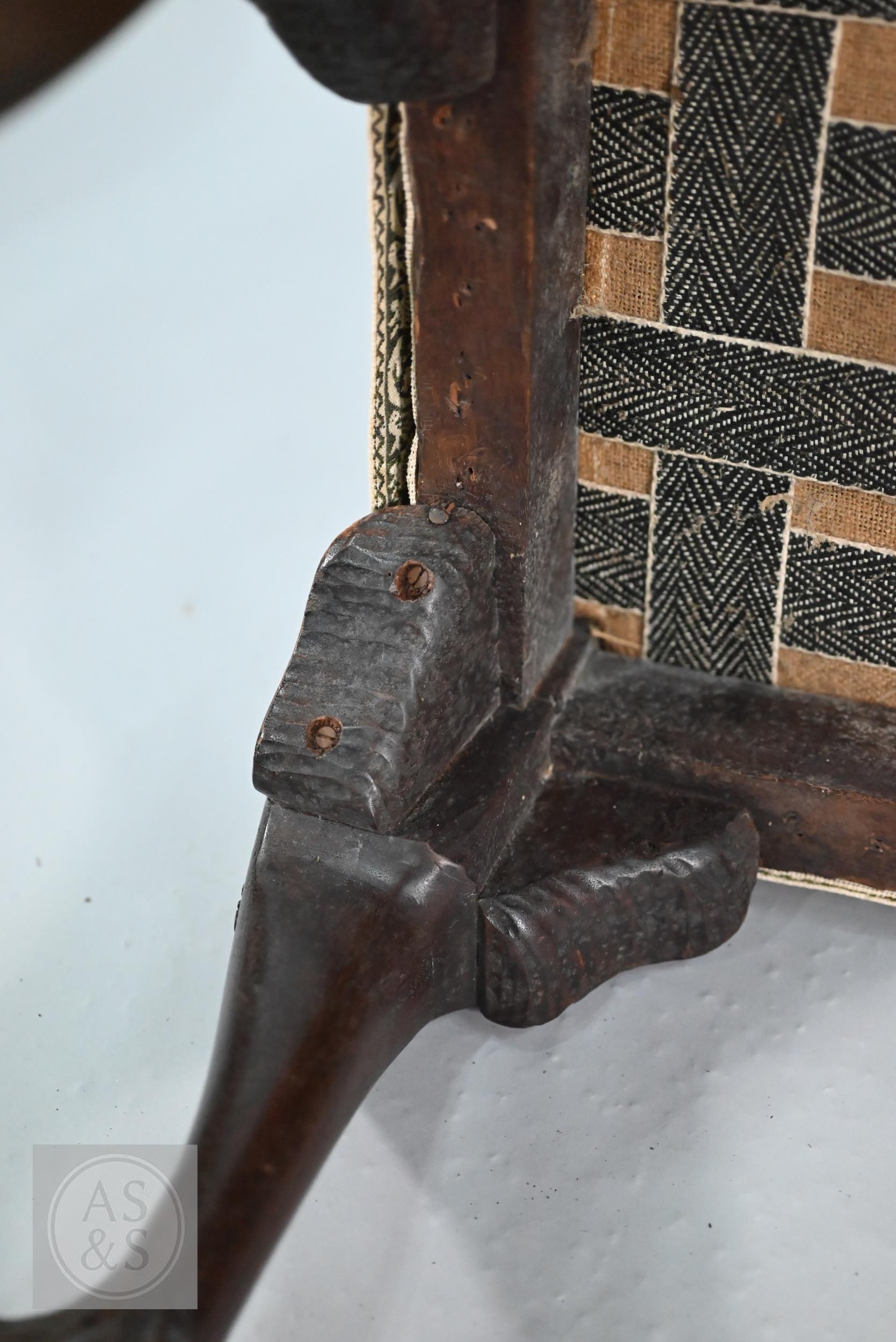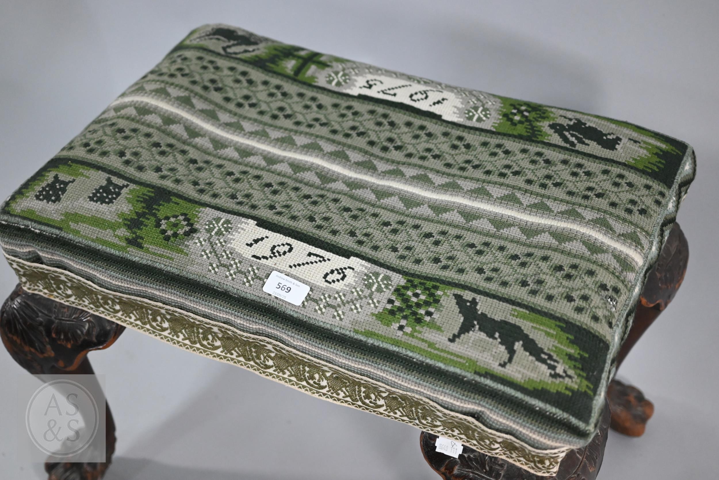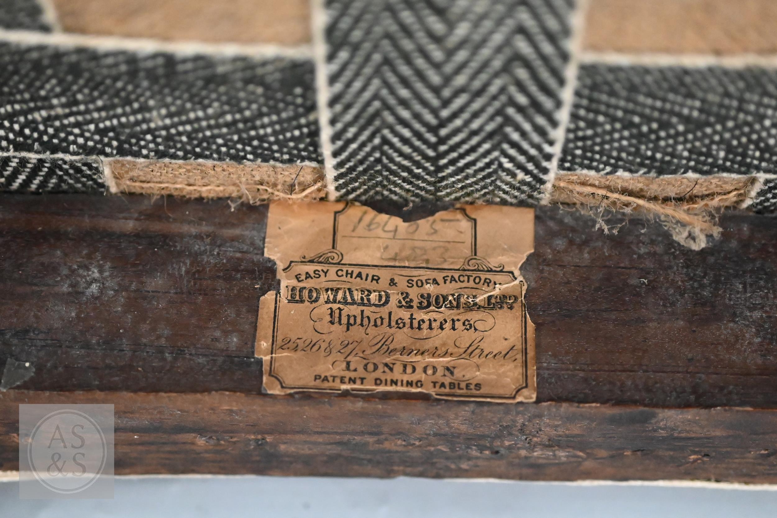 A Victorian carved walnut stool in the Georgian style by Howard & Sons Ltd, the (later covered) overstuffed seat raised on cabriole supports to claw and ball feet, bears original paper makers label to underside, 62 cm x 42 cm x 42 cm h
