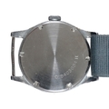 with manual wind movement, black dial, subsidiary seconds dial, luminous Arabic numerals, blue steel luminous hands, circa 1940s, on a grey NATO strap, case diameter approx. 34mm