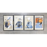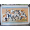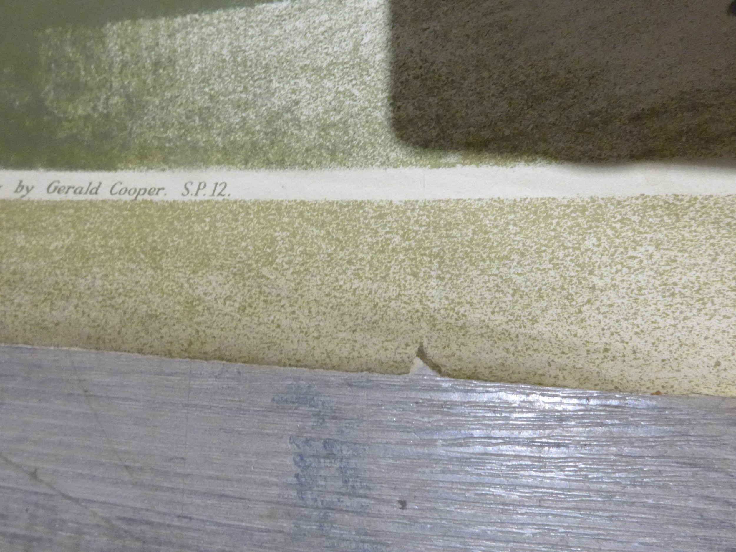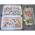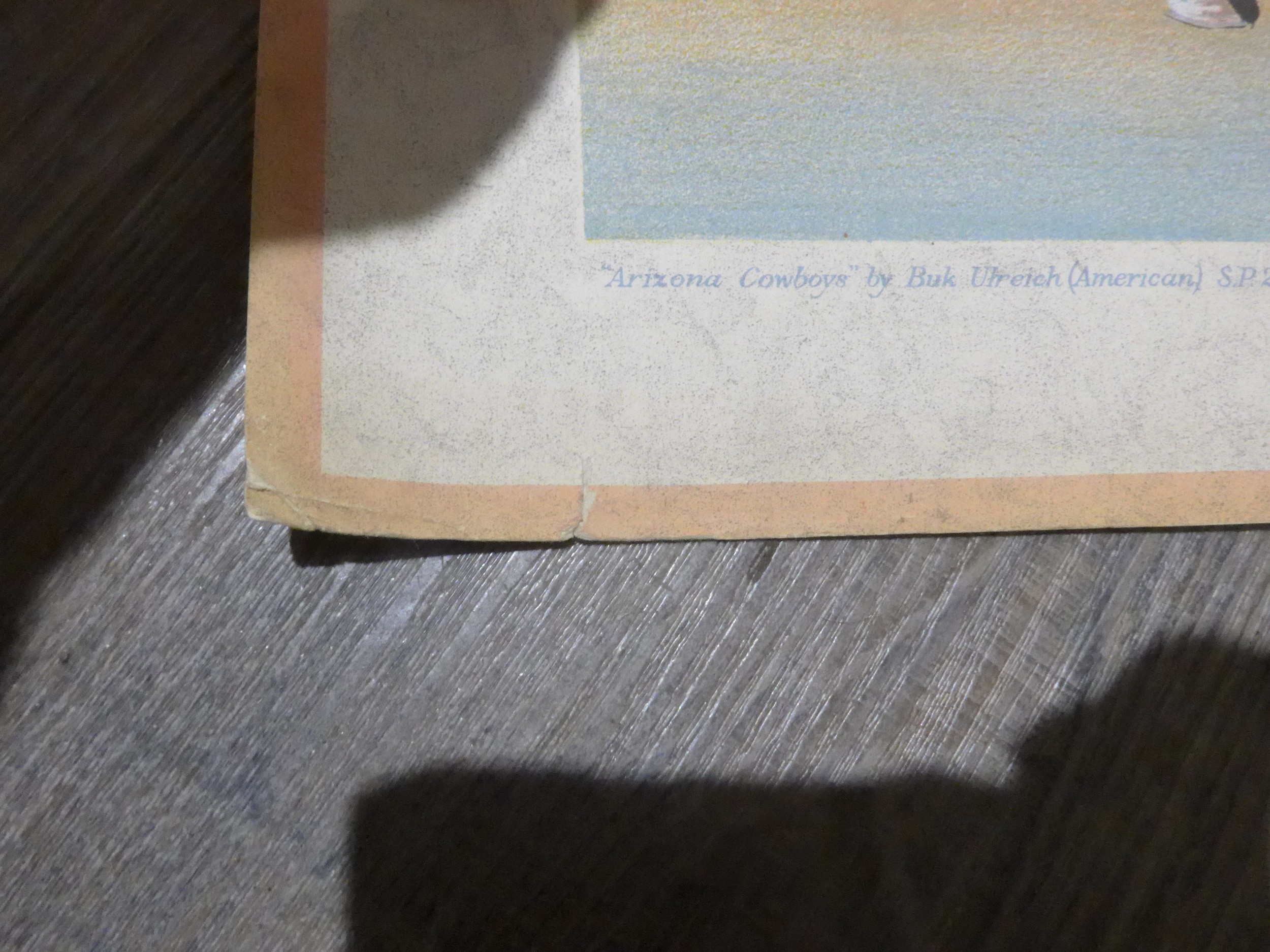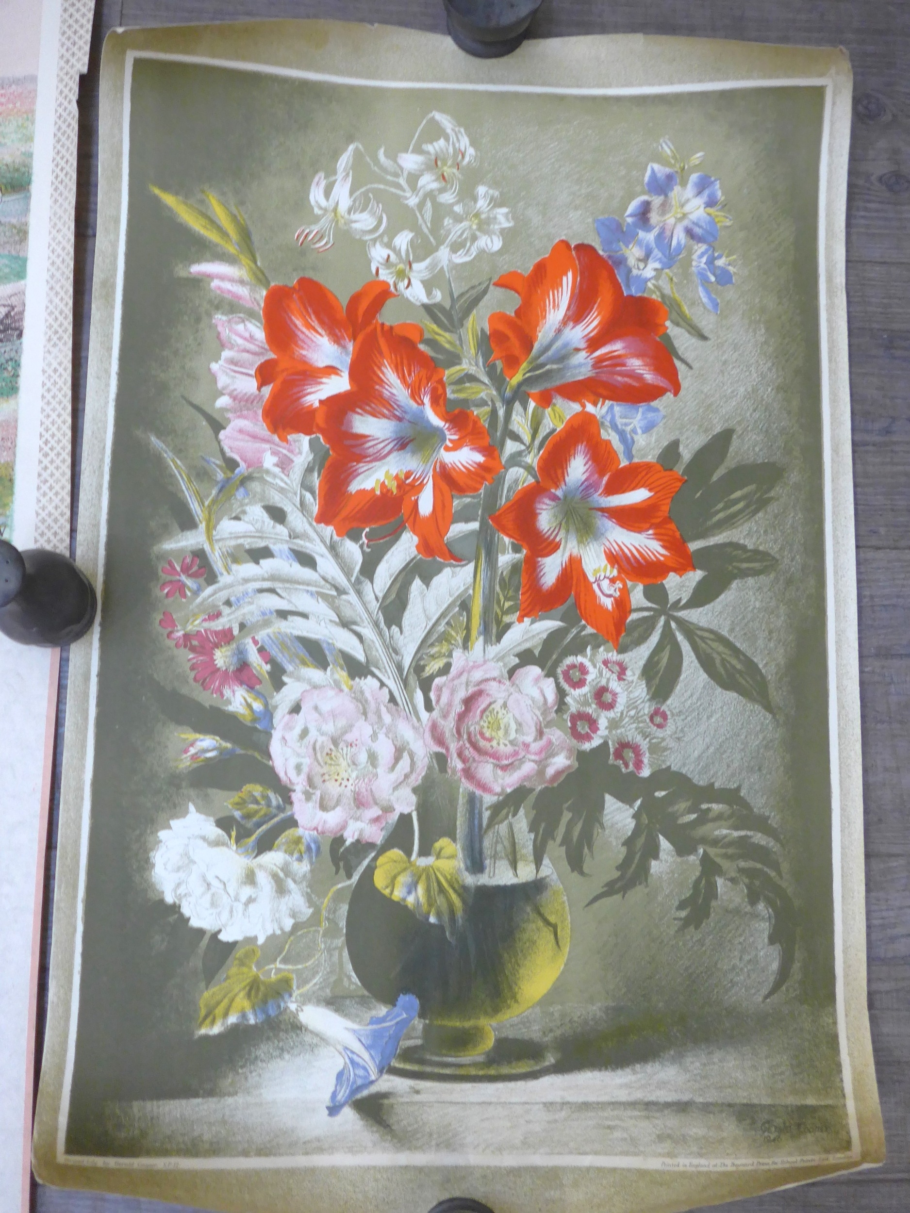 Baynard Press for School Prints Ltd - Three unframed prints including Michael Rothenstein 'Timber Felling In Essex', Gerald Cooper 'Striped Lily' and Buk Ulreich 'Arizona Cowboys'. Each 49.5cm x 76cm, (Splits to edges of each)